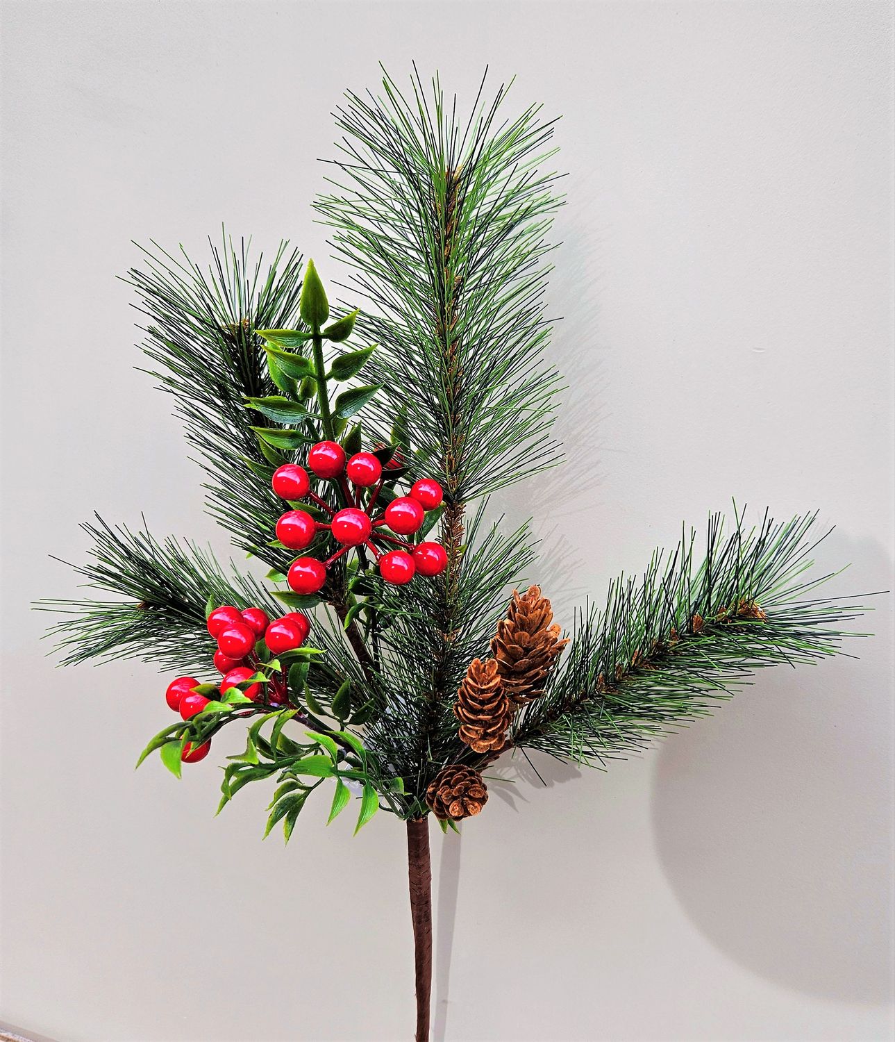 Produktinformationen "Dekozweig mit Kiefer, Beeren und Zapfen, 66 cm, grün-rot"