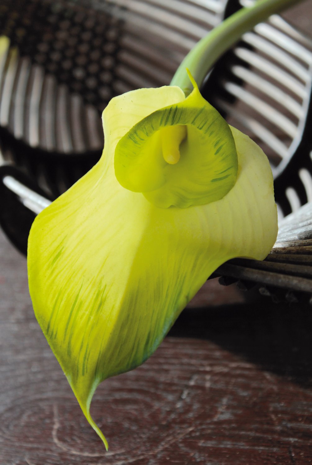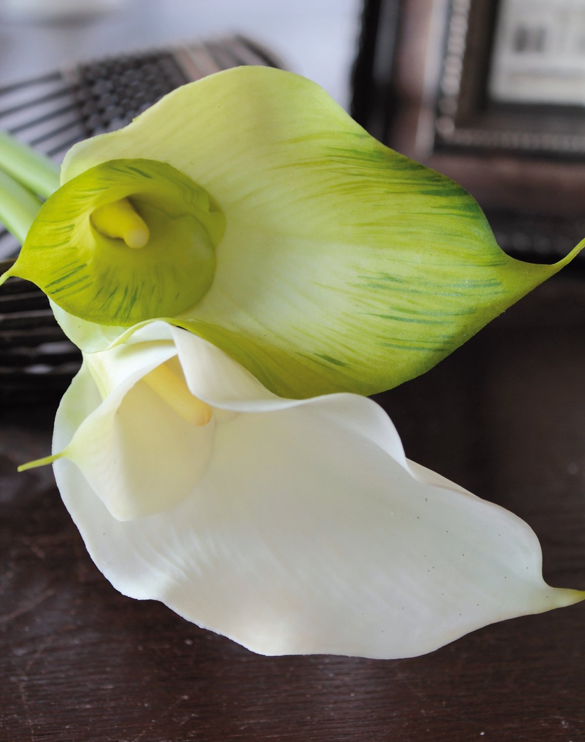 Produktinformationen "Künstliche Calla 'doppelt', 77 cm, Real Touch, grün-weiß"