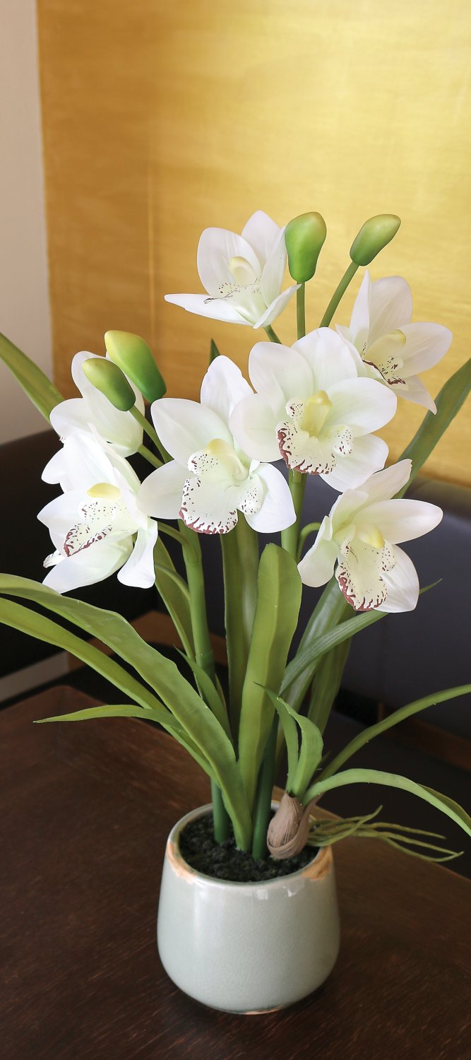 Produktinformationen "Künstliche Orchidee Cymbidium, getopft, 57 cm, Real Touch Soft, creme-weiß"