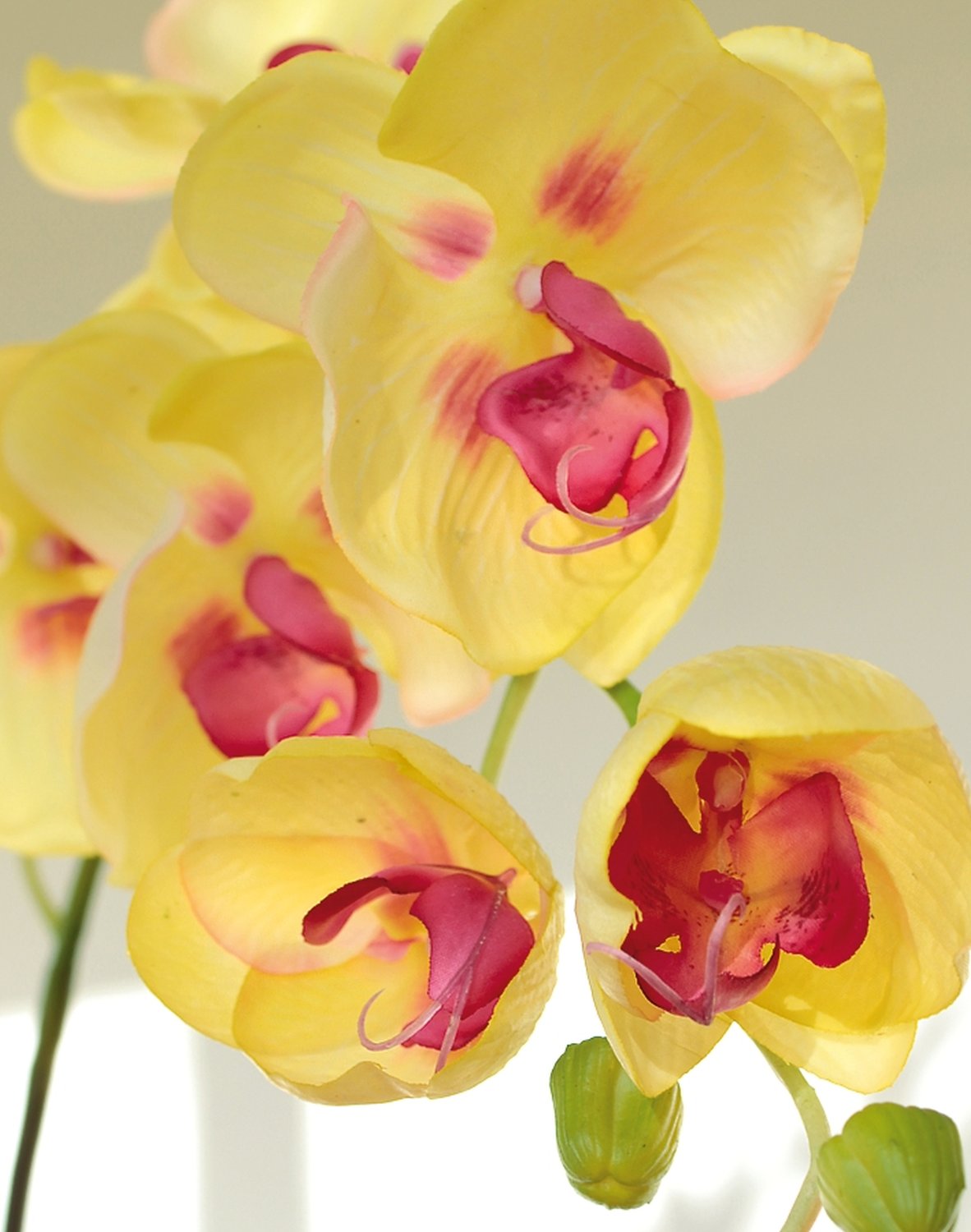 Produktinformationen "Künstliche Orchidee Phalaenopsis, 114 cm, Real Touch, gelb-grün/burgunderrot"
