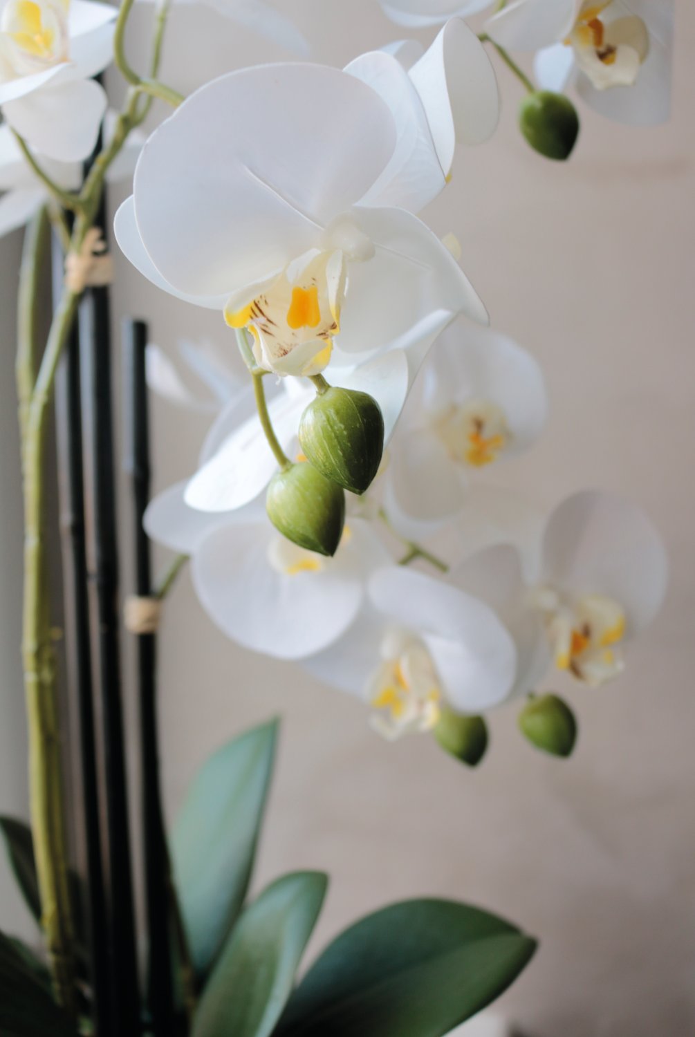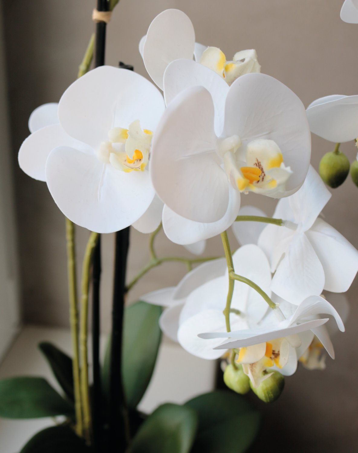 Produktinformationen "Künstliche Orchidee Phalaenopsis, 3-fach, getopft, 55 cm, Real Touch, creme-weiß"