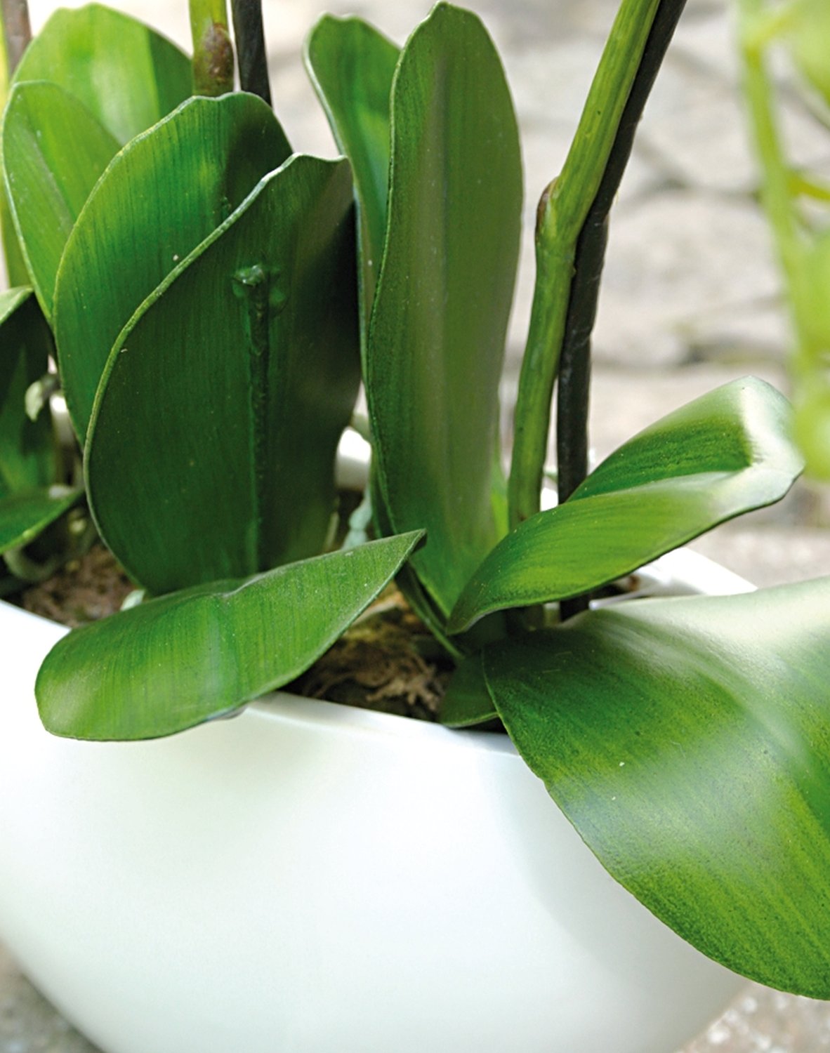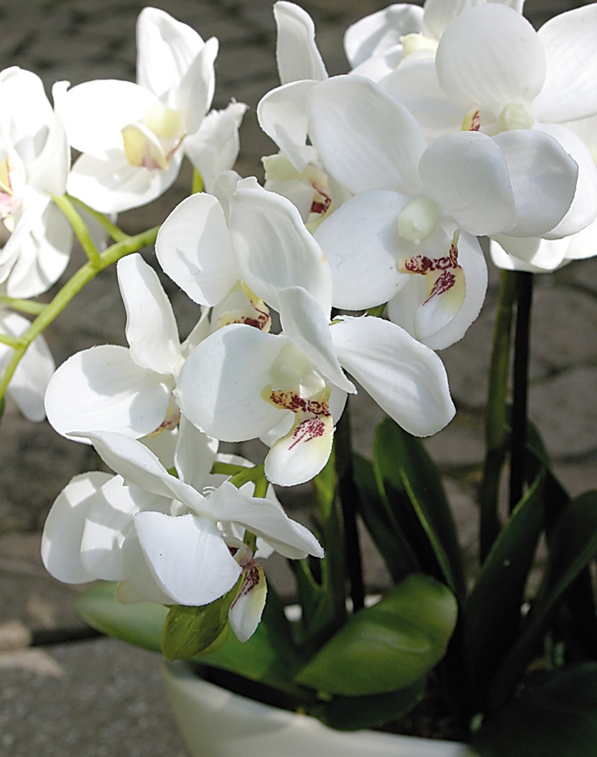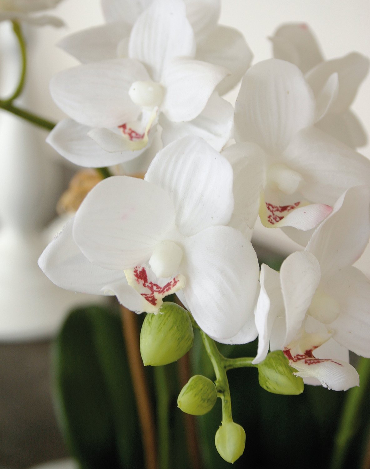 Produktinformationen "Künstliche Orchidee Phalaenopsis, 3-fach, in Schale, 38 cm, Real Touch, weiß"