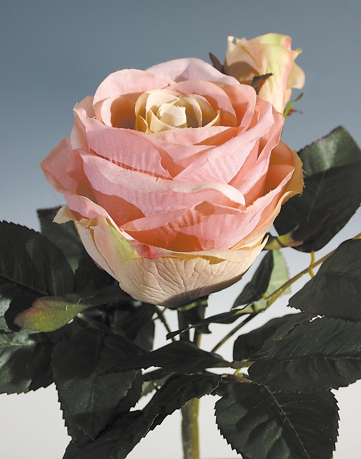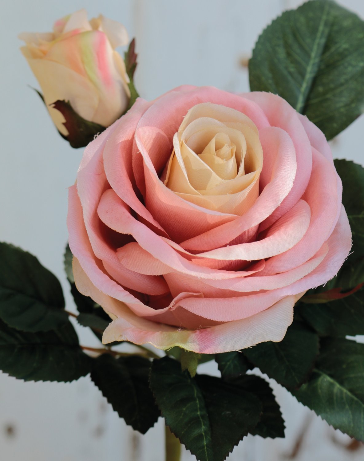 Produktinformationen "Künstliche Rose, 1 Blüte, 1 Knospe, 23 cm, rosa"