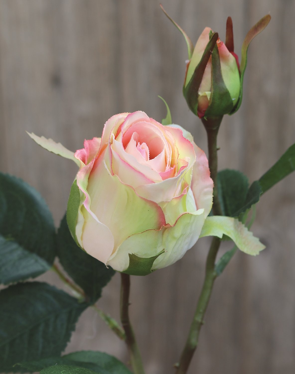 Produktinformationen "Künstliche Rose, 1 Blüte, 1 Knospe, 45 cm, creme-aprikose"