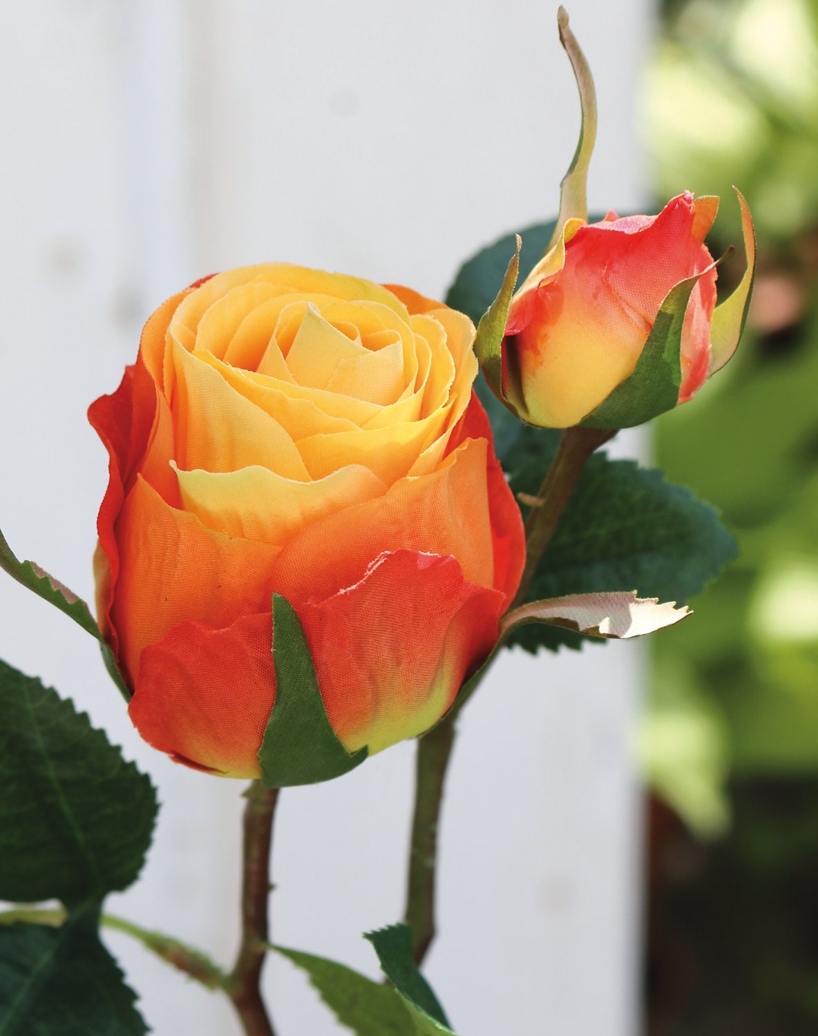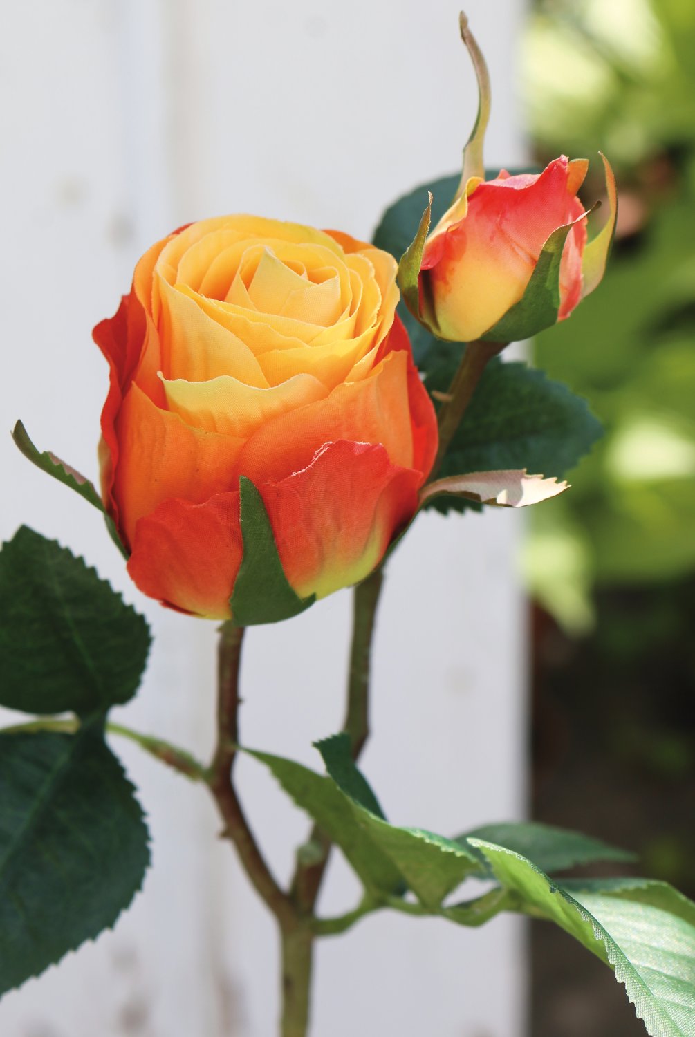 Produktinformationen "Künstliche Rose, 1 Blüte, 1 Knospe, 45 cm, gelb-orange"