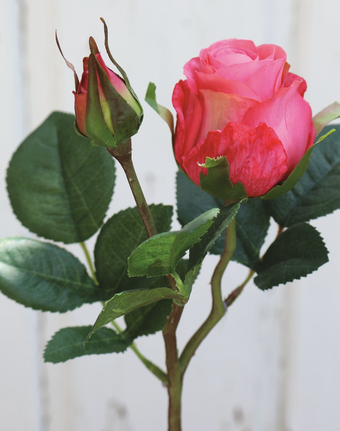 Produktinformationen "Künstliche Rose, 1 Blüte, 1 Knospe, 45 cm, pink"
