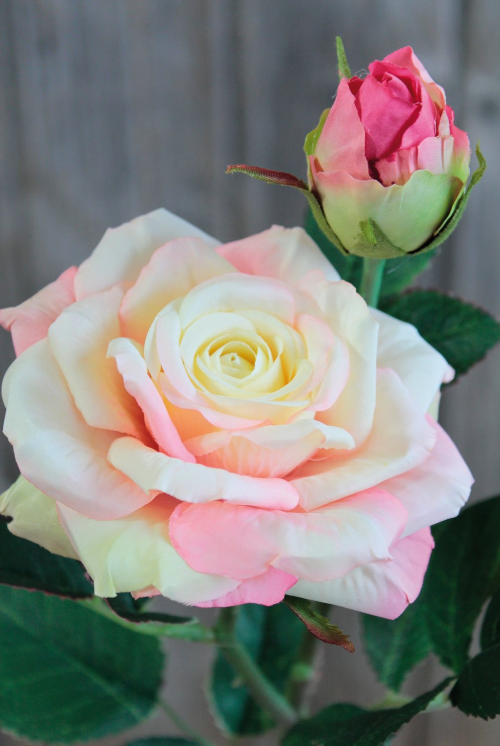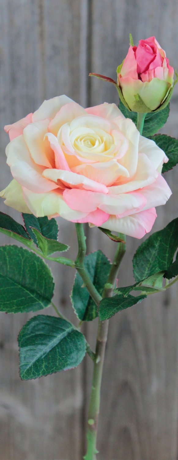 Produktinformationen "Künstliche Rose, 1 Blüten, 1 Knospen, 37 cm, Real Touch Soft, creme-aprikose"