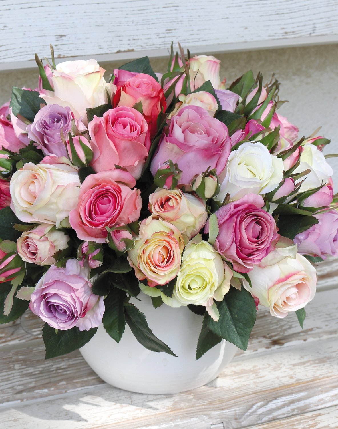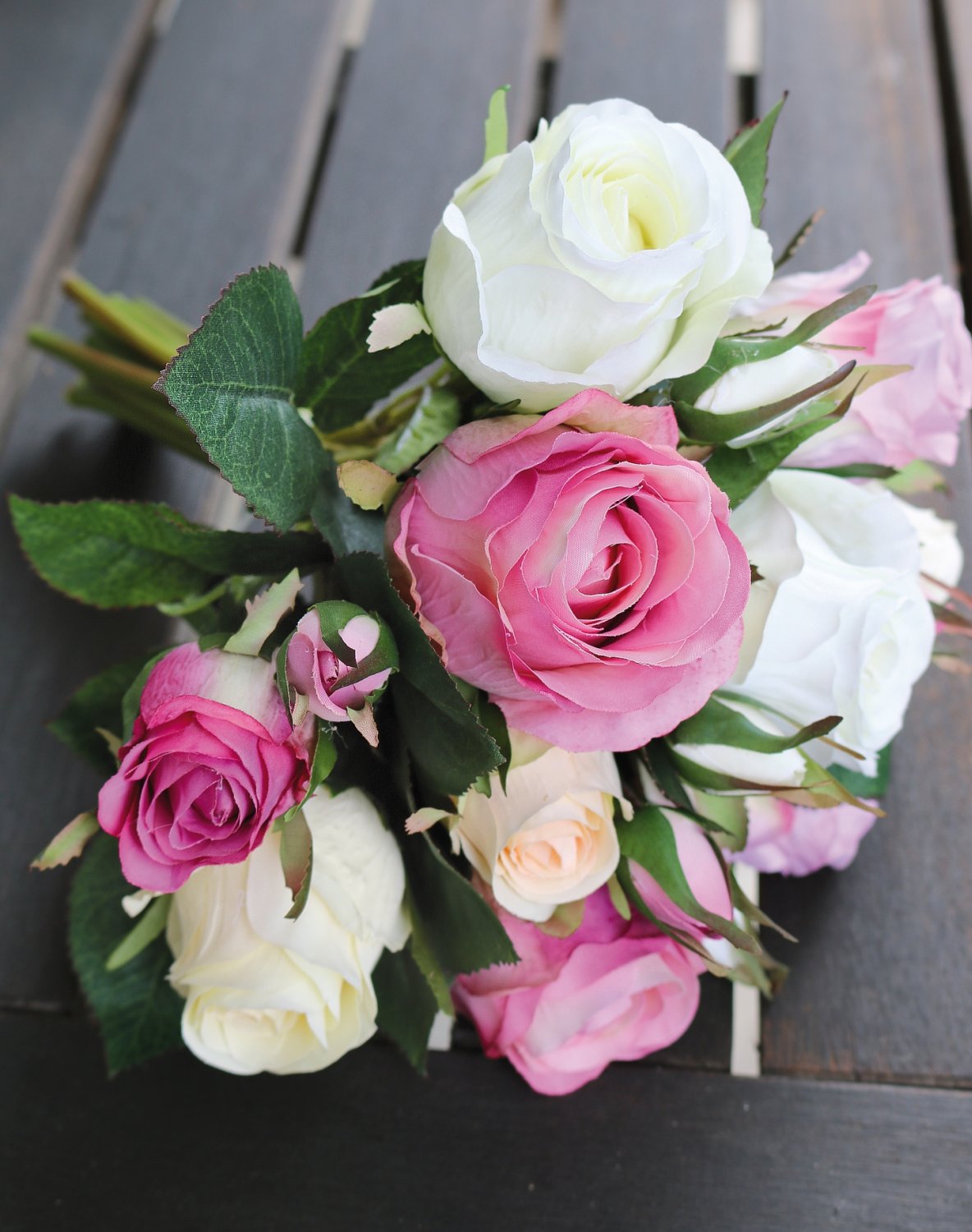 Produktinformationen "Künstlicher Freiland-Rosenstrauß, 16-fach, 28 cm, creme-rosa"