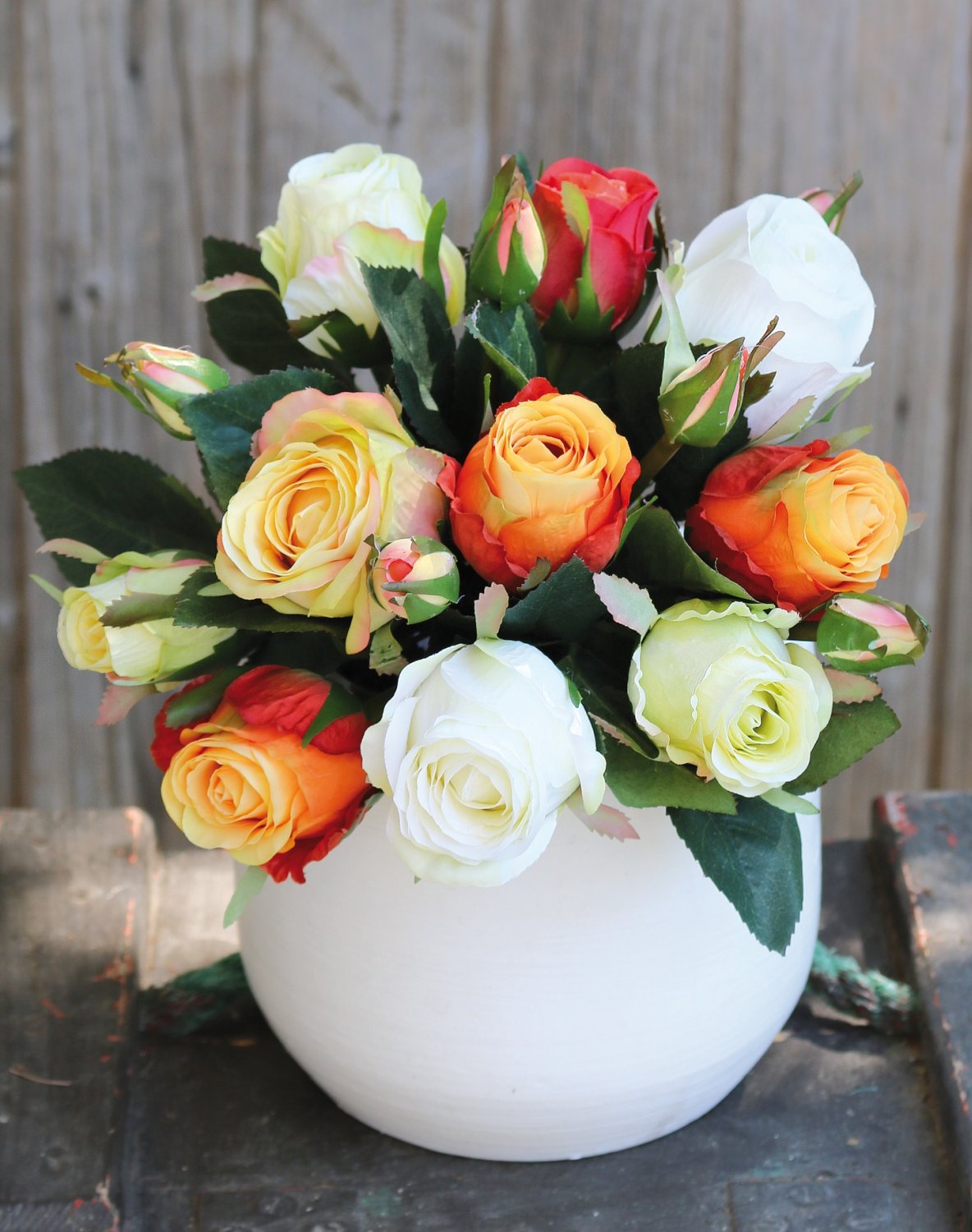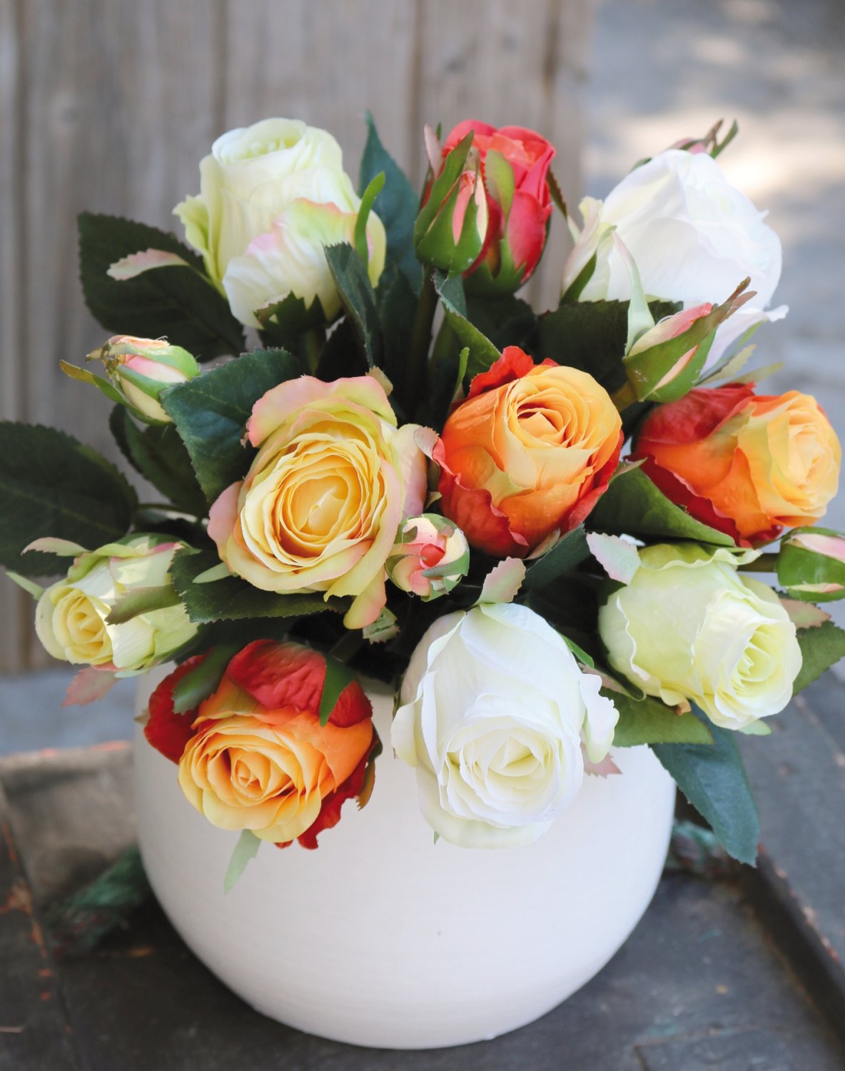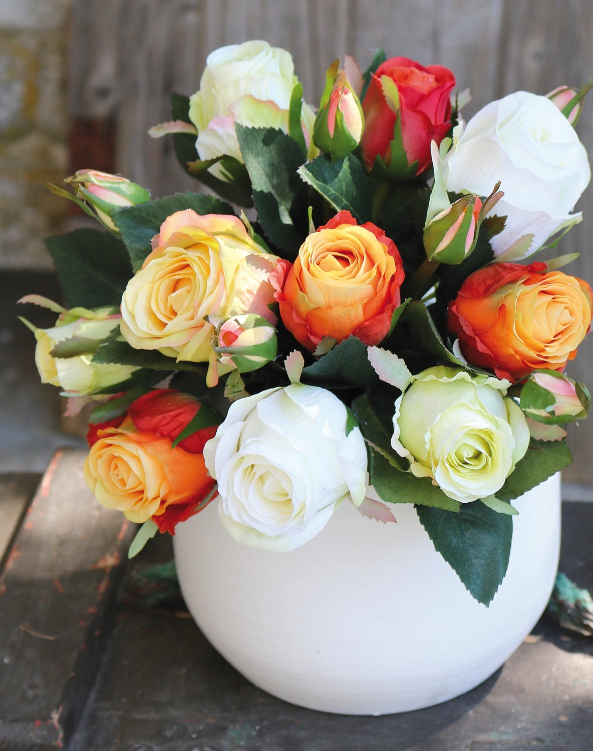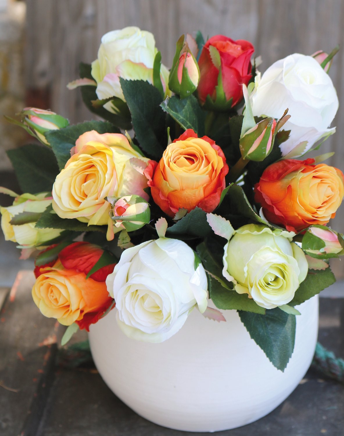Künstlicher Freiland-Rosenstrauß, 24-fach, 28 cm, rot-gelb