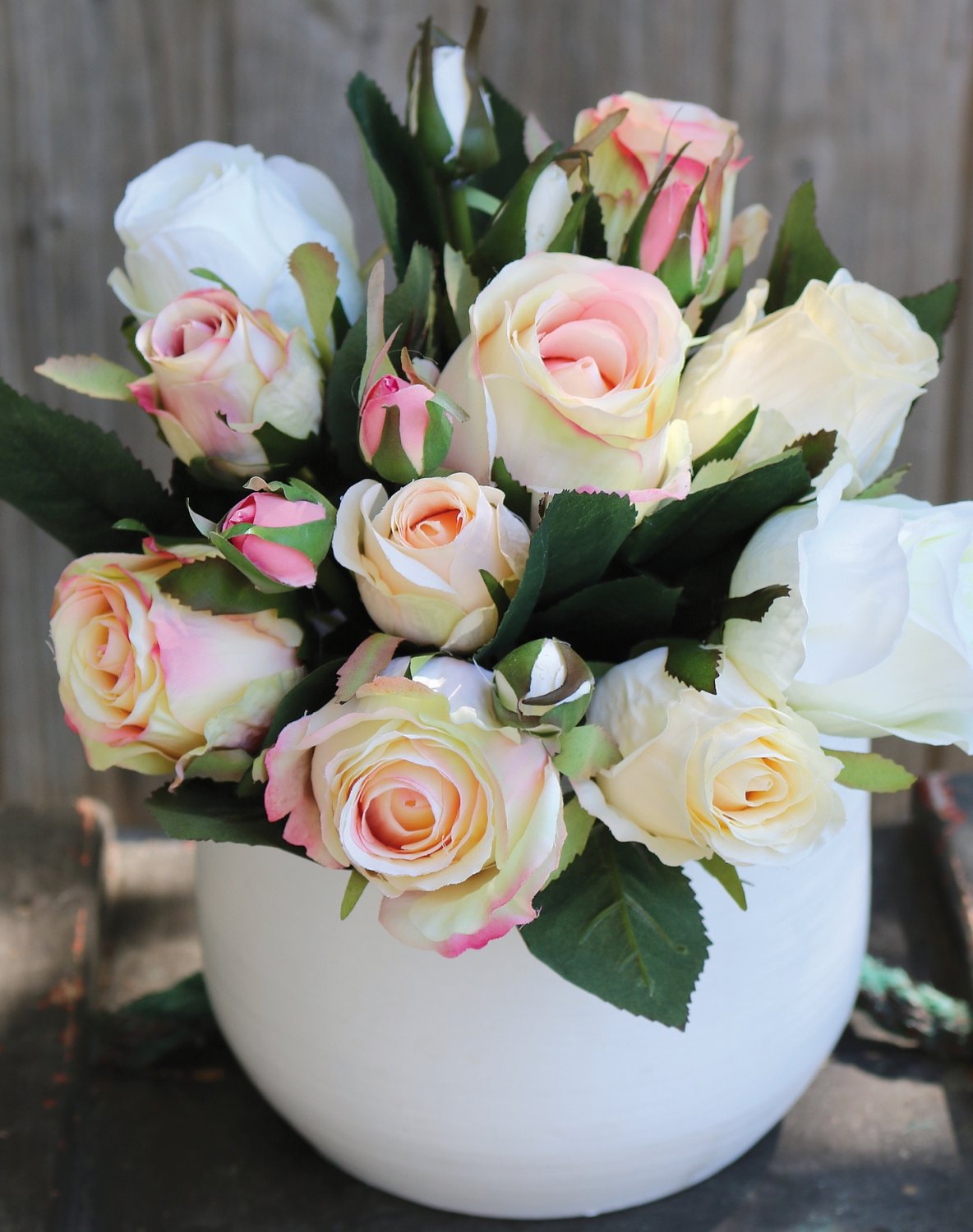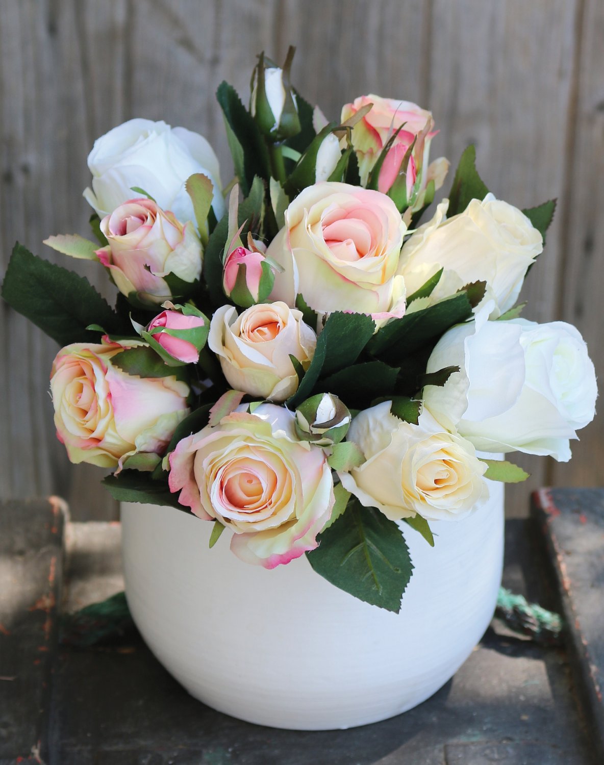 Künstlicher Freiland-Rosenstrauß, 24-fach, 28 cm, weiß-rosa