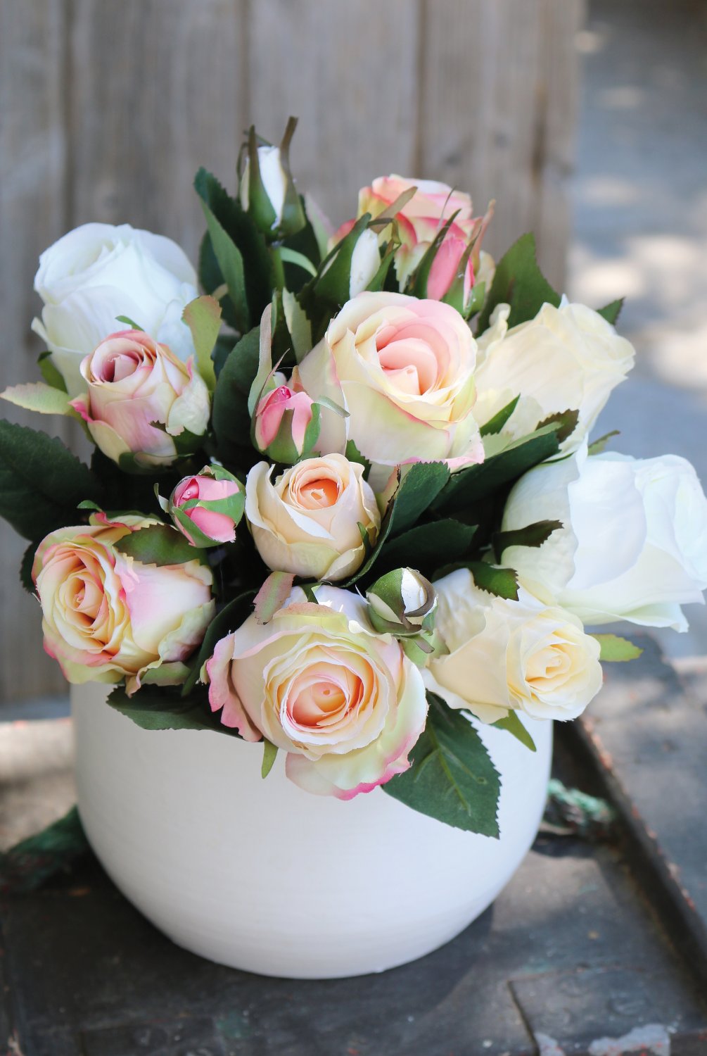 Künstlicher Freiland-Rosenstrauß, 24-fach, 28 cm, creme-rosa