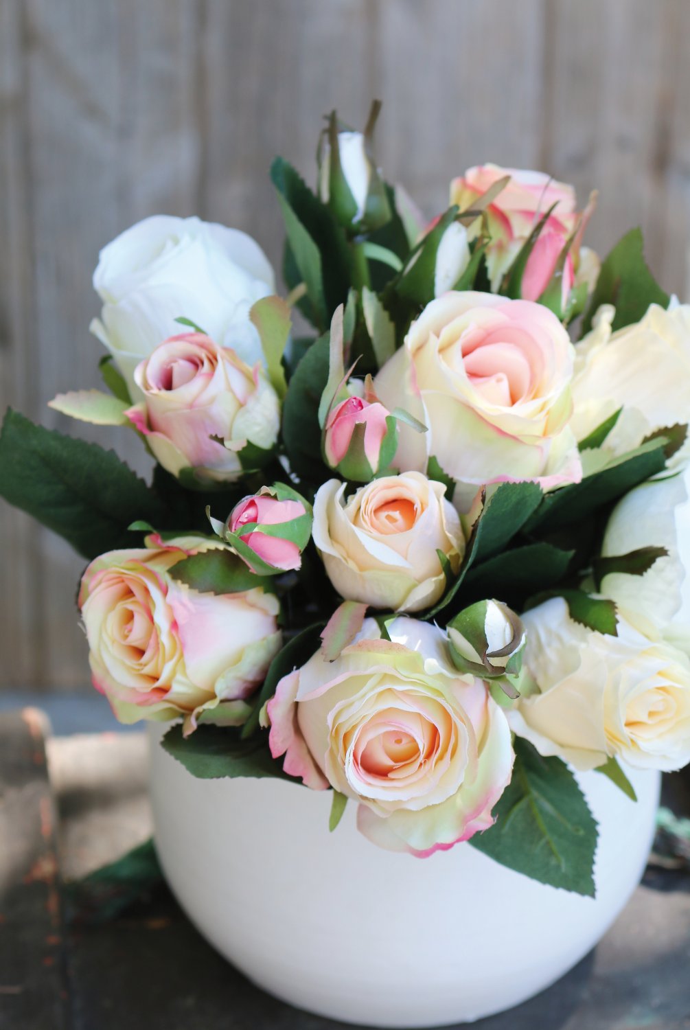 Künstlicher Freiland-Rosenstrauß, 16-fach, 28 cm, creme-rosa