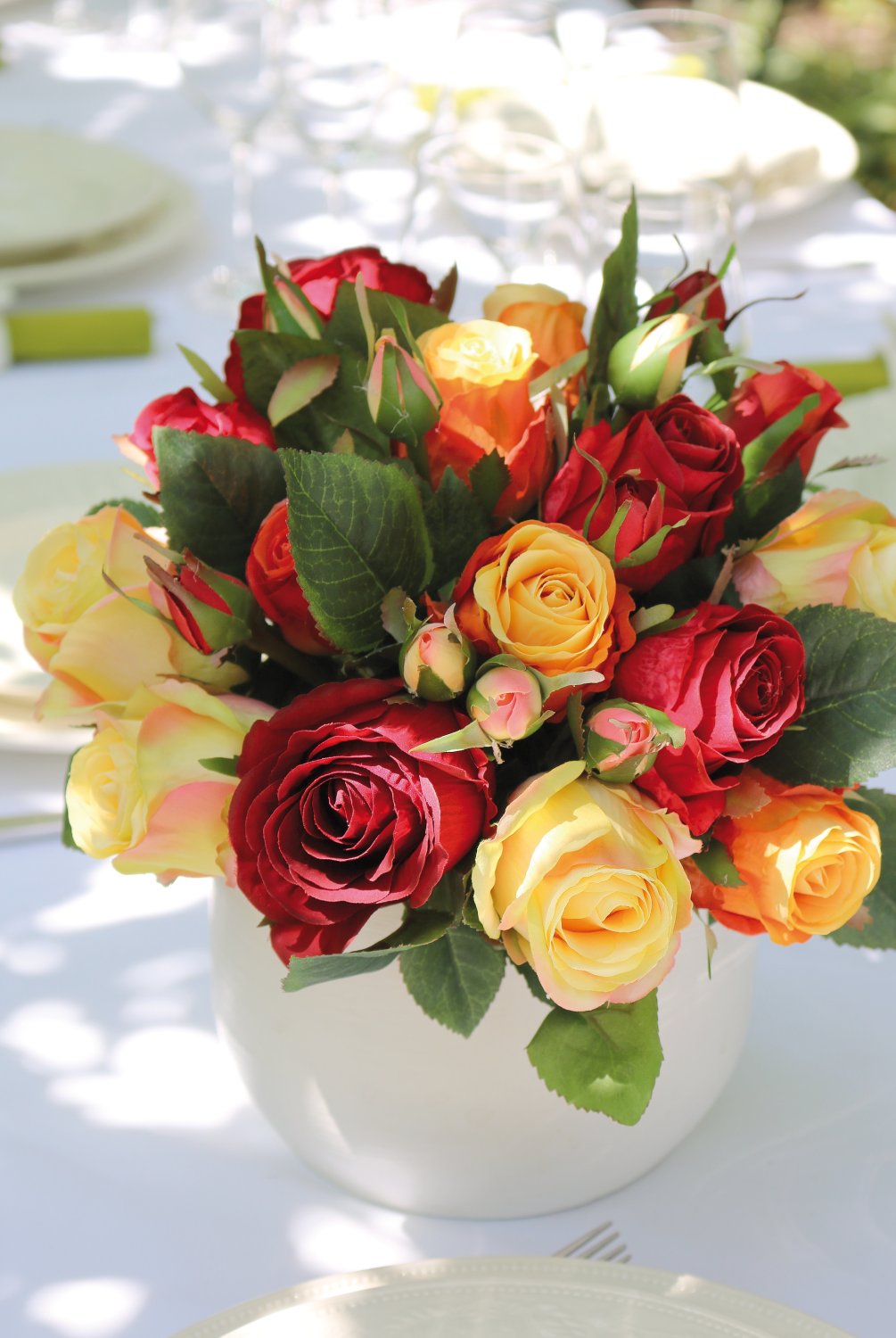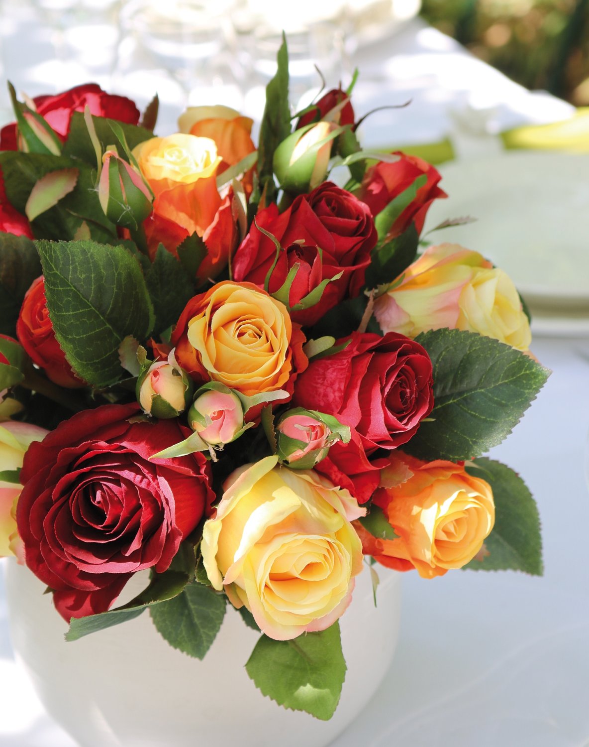 Produktinformationen "Künstlicher Freiland-Rosenstrauß, 24-fach, 28 cm, rot-gelb"