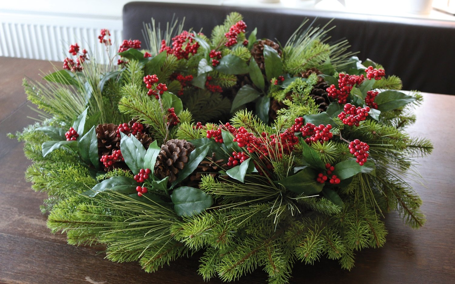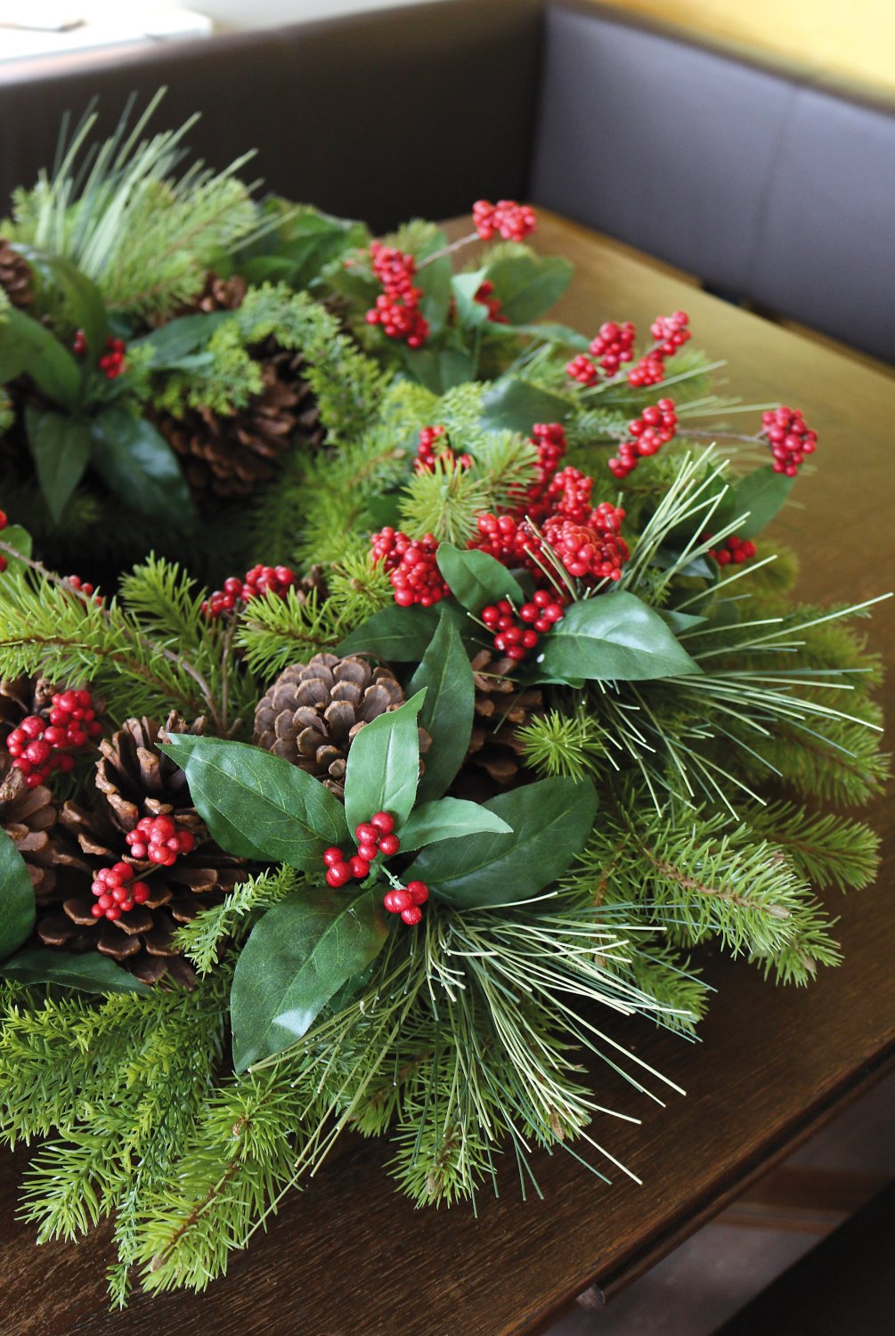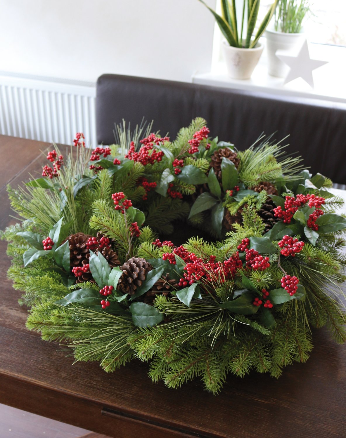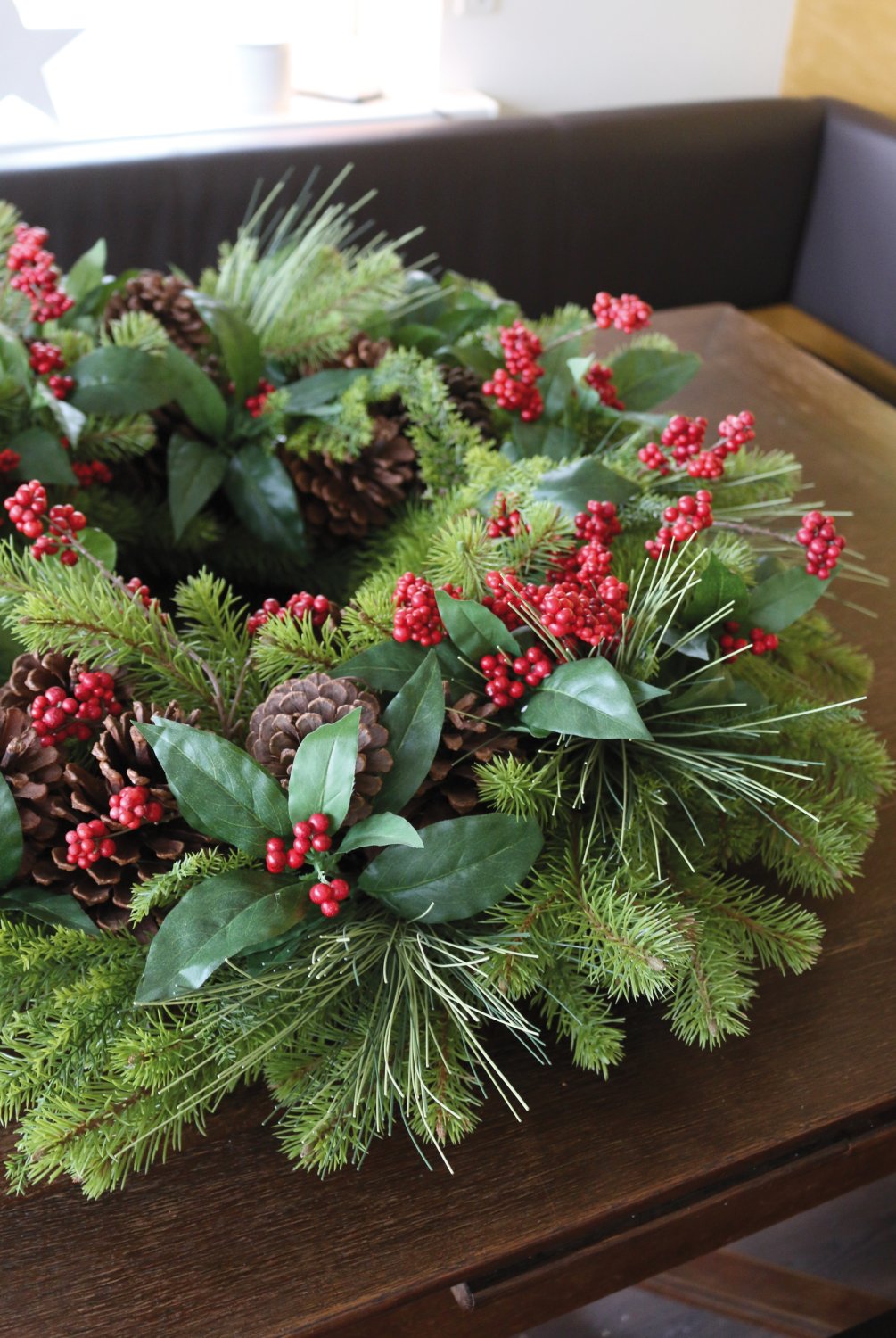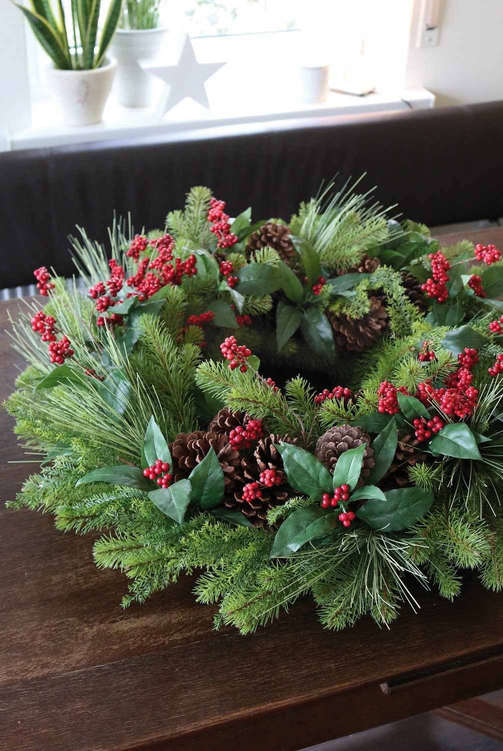 Produktinformationen "Künstlicher Kranz 'Mischgrün / Beeren / Zapfen', Ø 76 cm, grün-rot"