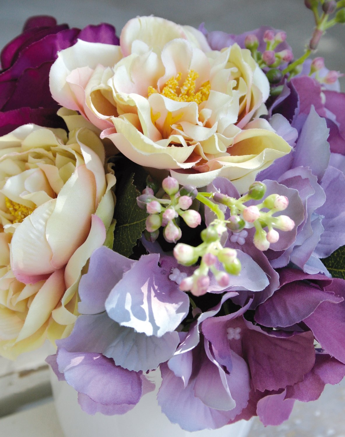 Produktinformationen "Künstliches Päonien Arrangement in Keramiktopf, 17 cm, hellviolett"