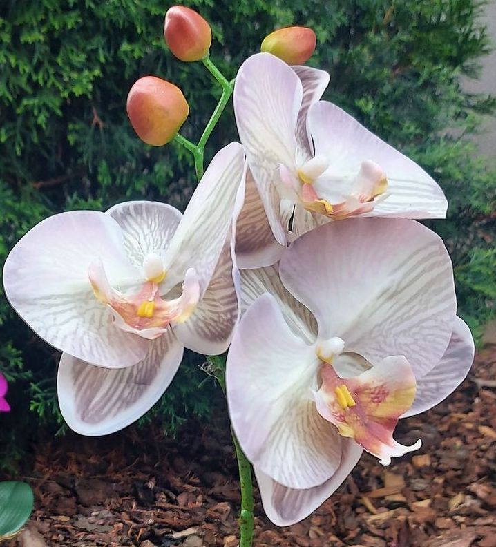 Produktinformationen "Kunstorchidee in Silbervase, 32 cm, Real Touch Soft, grau-silber"
