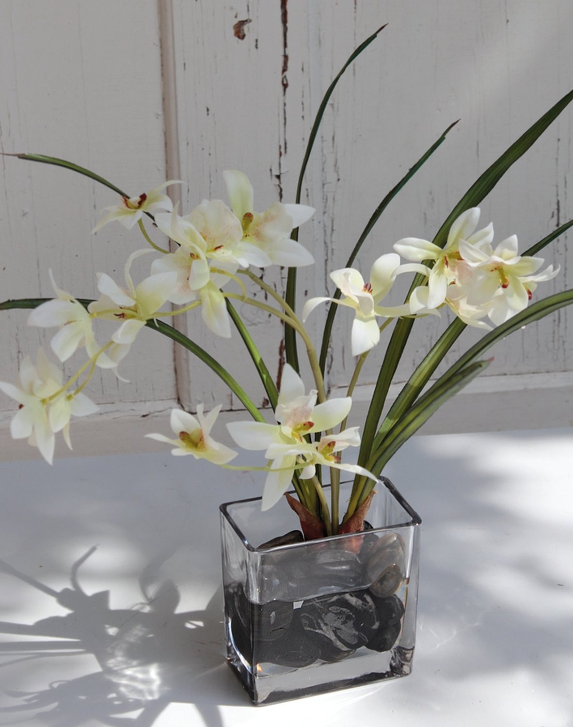 Künstliche Orchidee Dendrobium in Glasgefäß, 40 cm, Real Touch Soft, weiß-grün