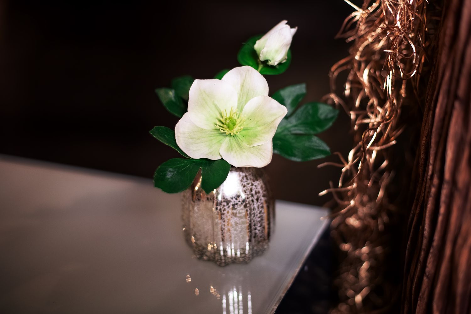 Produktinformationen "Unechtes Christrosenarrangement in Glasvase, 22 cm, creme-grün"