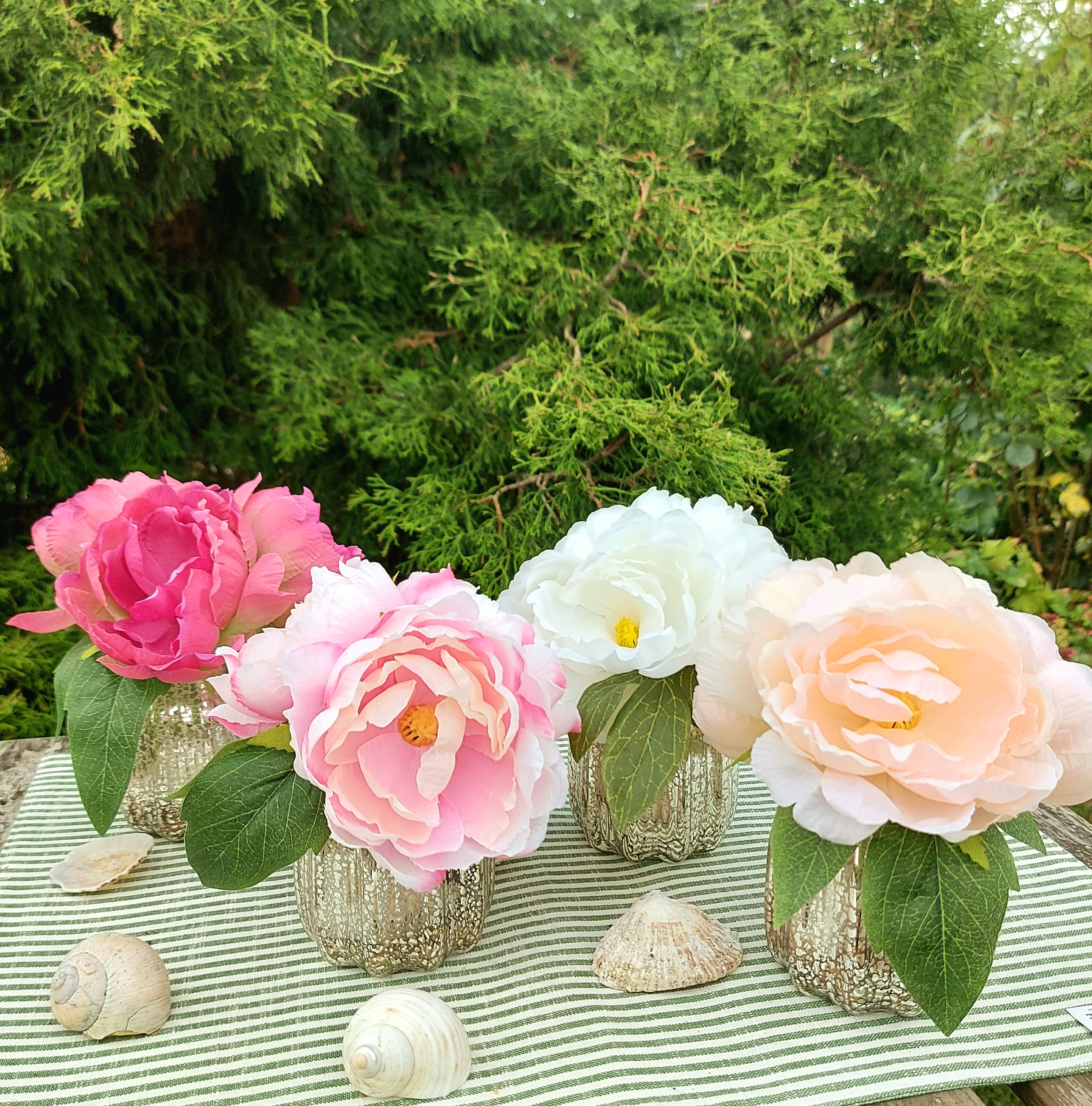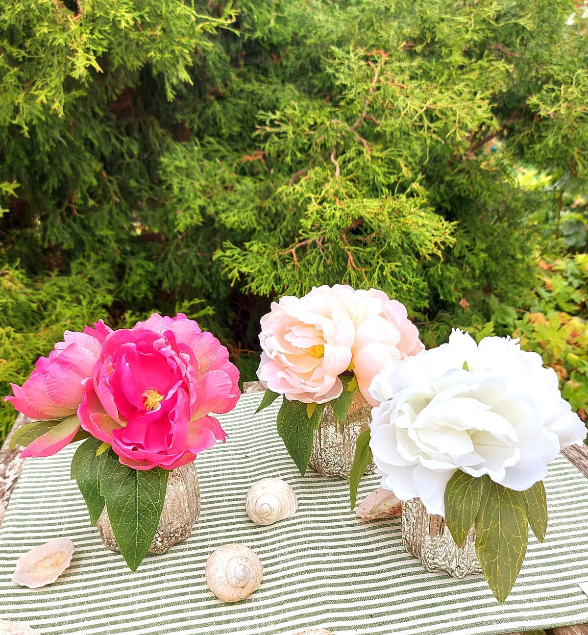 Produktinformationen "Unechtes Päonien-Arrangement in Glasvase, 15 cm, pink"
