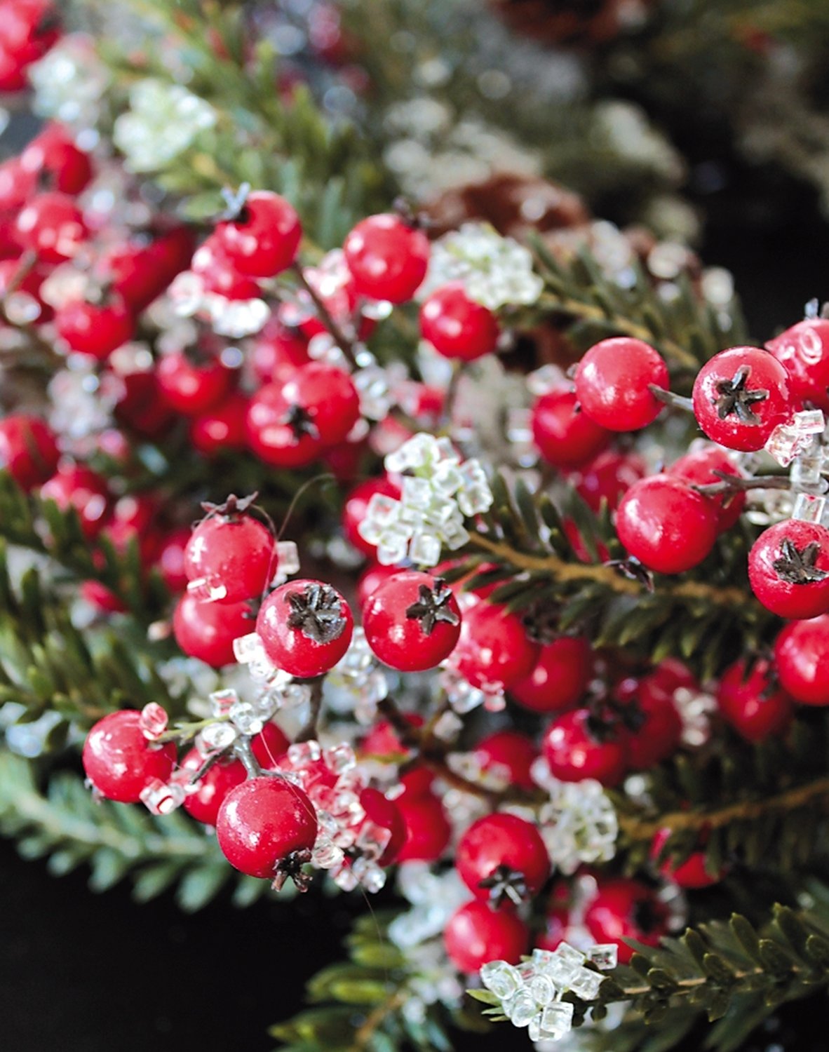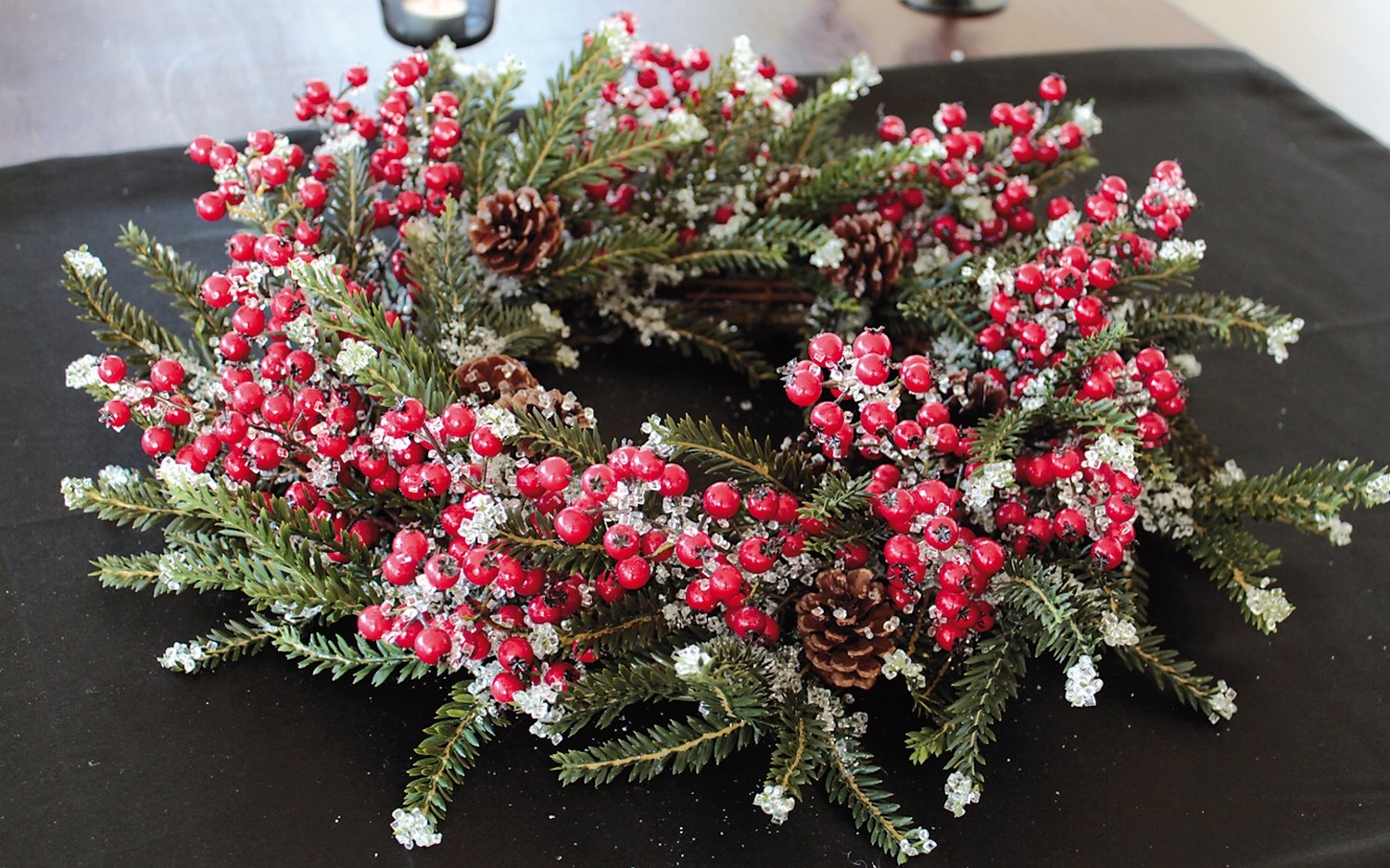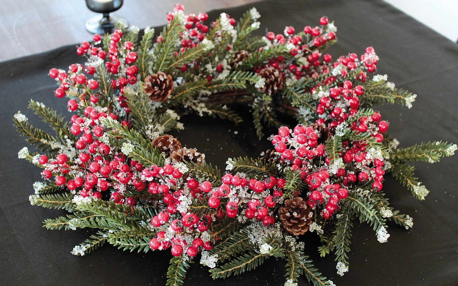 Product information "Fake fir Christmas wreath with berries / cones / ice, Ø 55 cm, red-green"