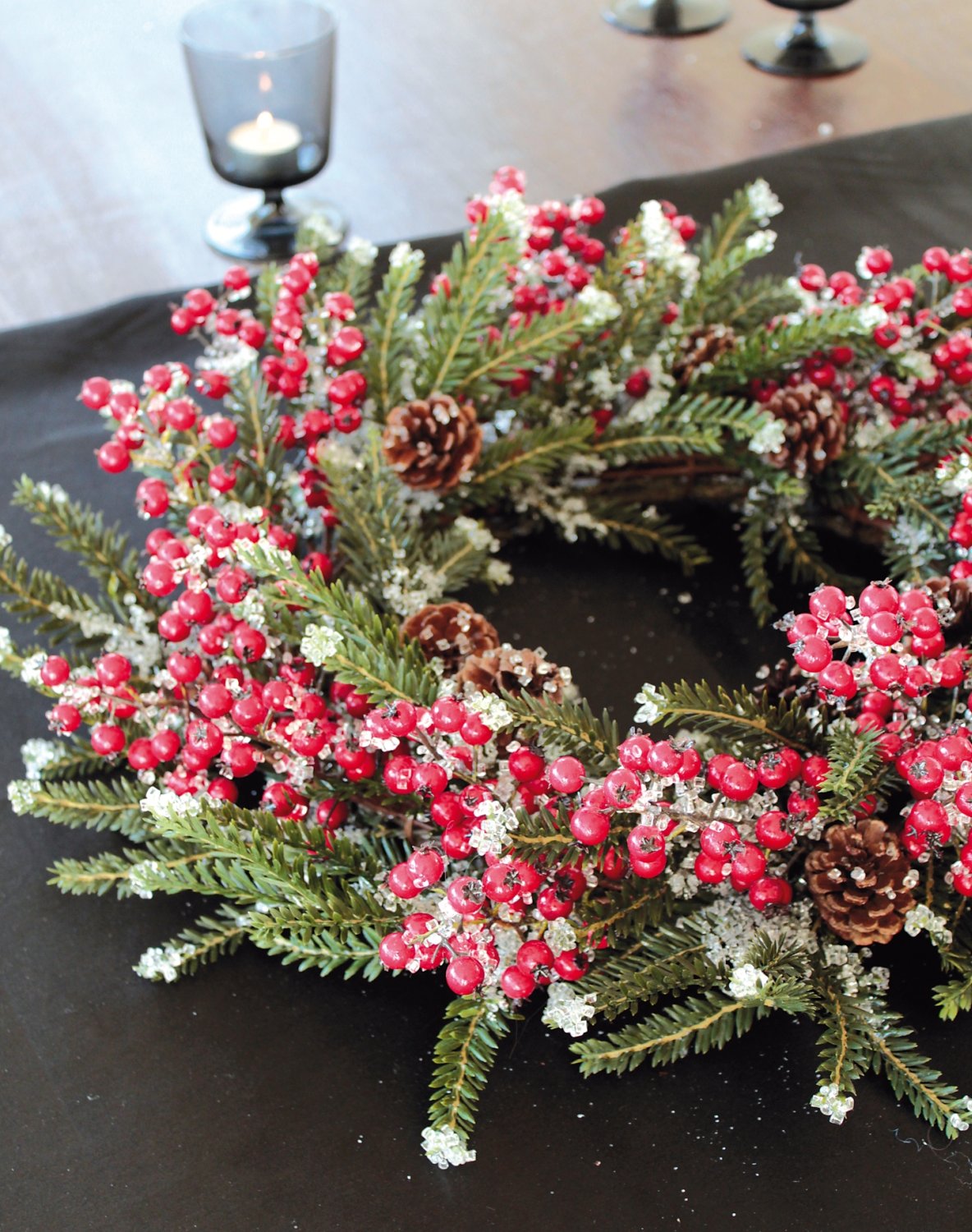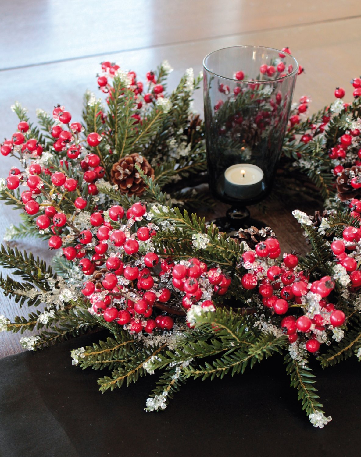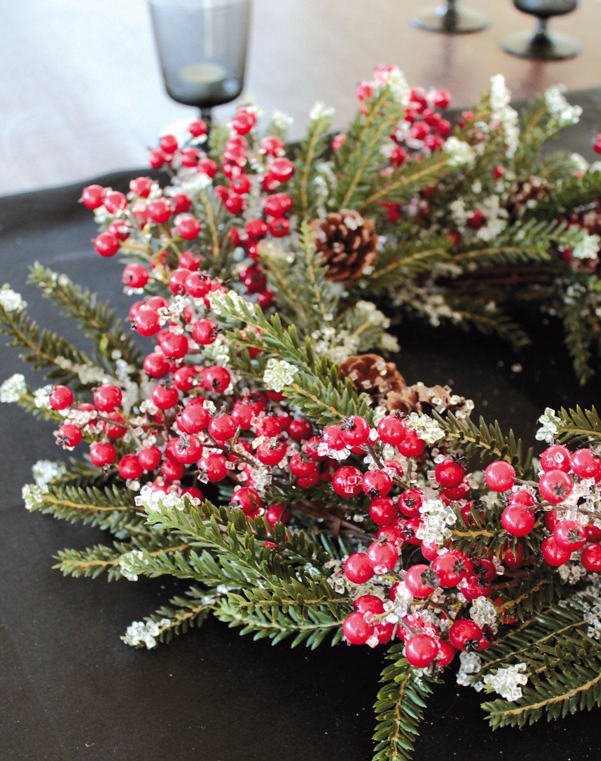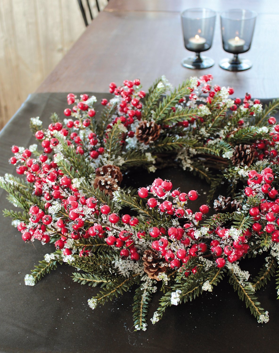 Product information "Fake fir Christmas wreath with berries / cones / ice, Ø 55 cm, red-green"
