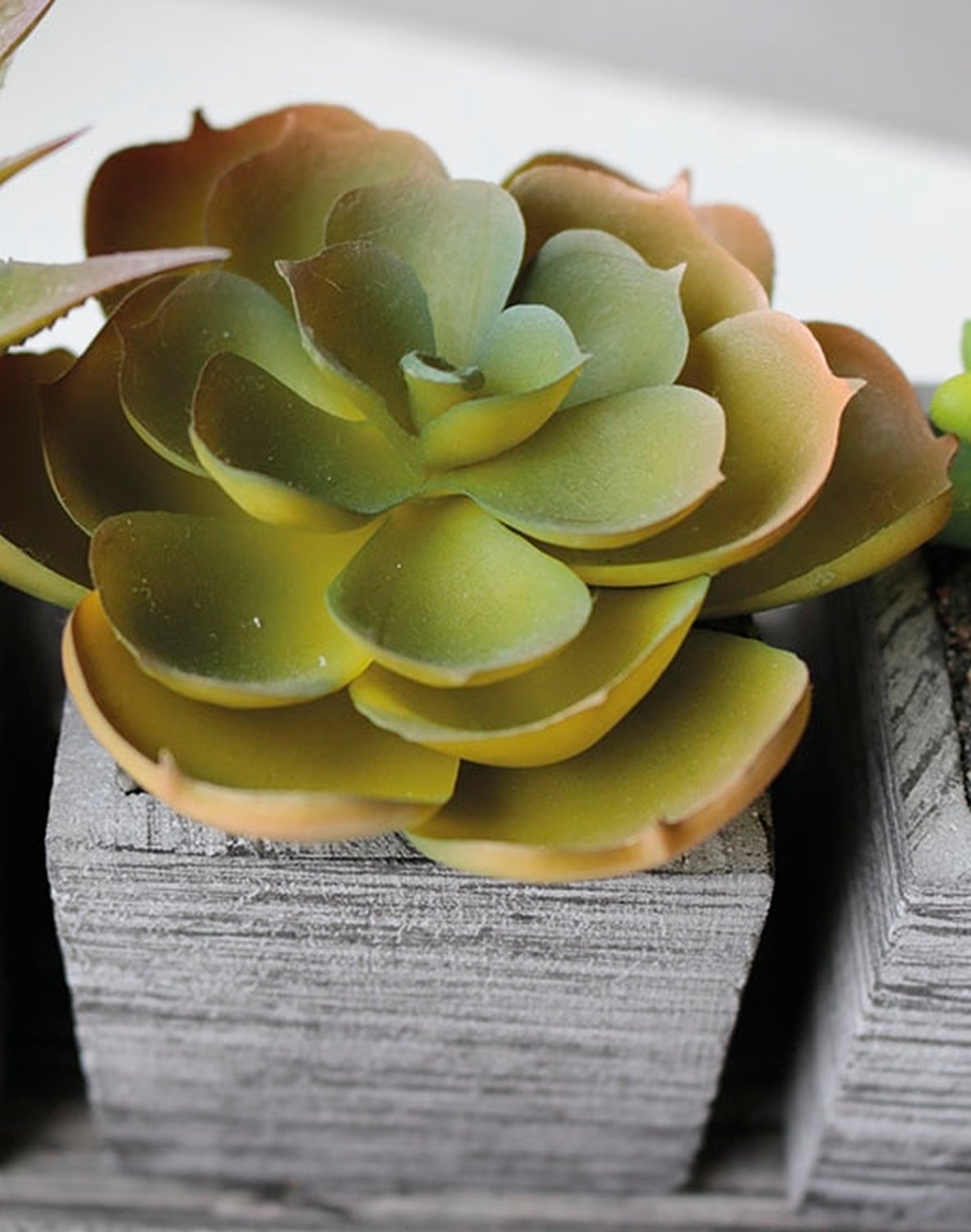 Product information "Plastic succulents-mix, 3 pieces on bowl, 19 x 7 x 11 cm, green"