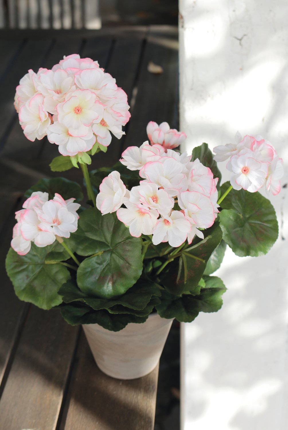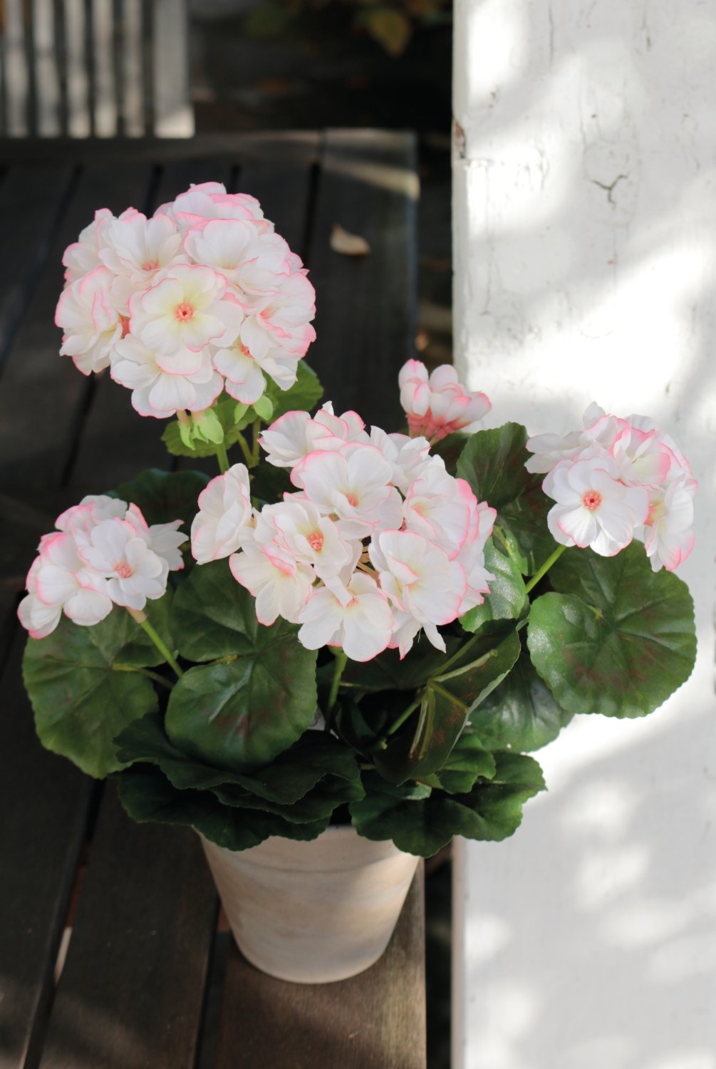 Product information "Silk geranium, potted, 33 cm, white-pink"