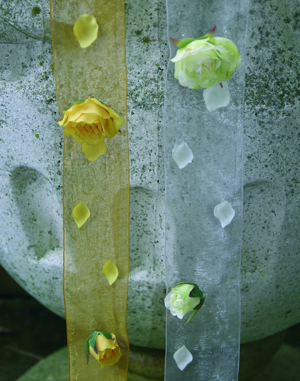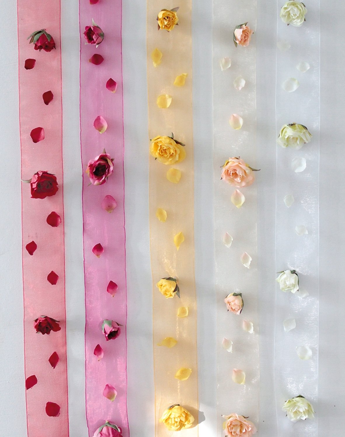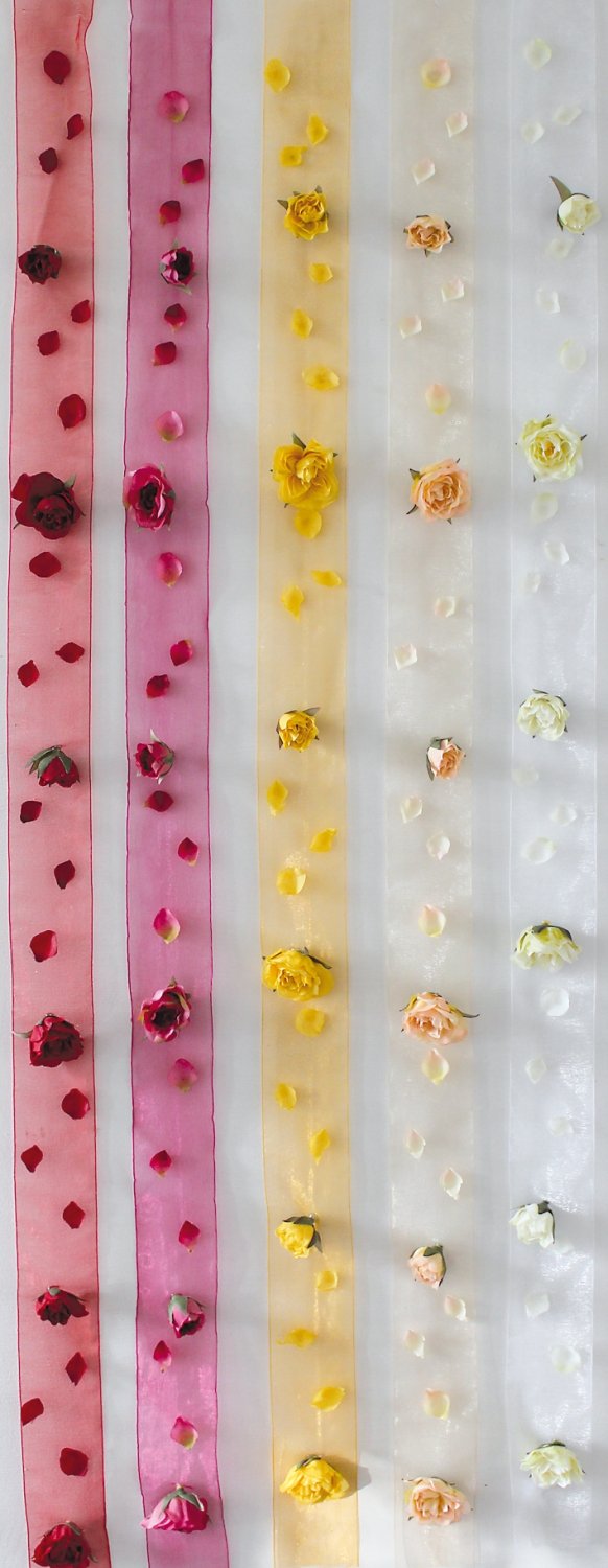 Product information "Table ribbon with artificial roses and petals, 100 cm, beige-white"