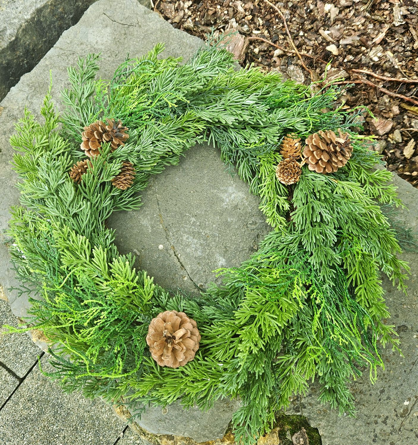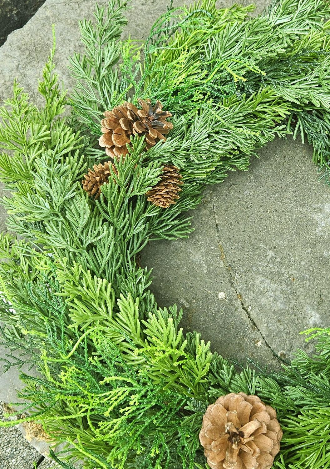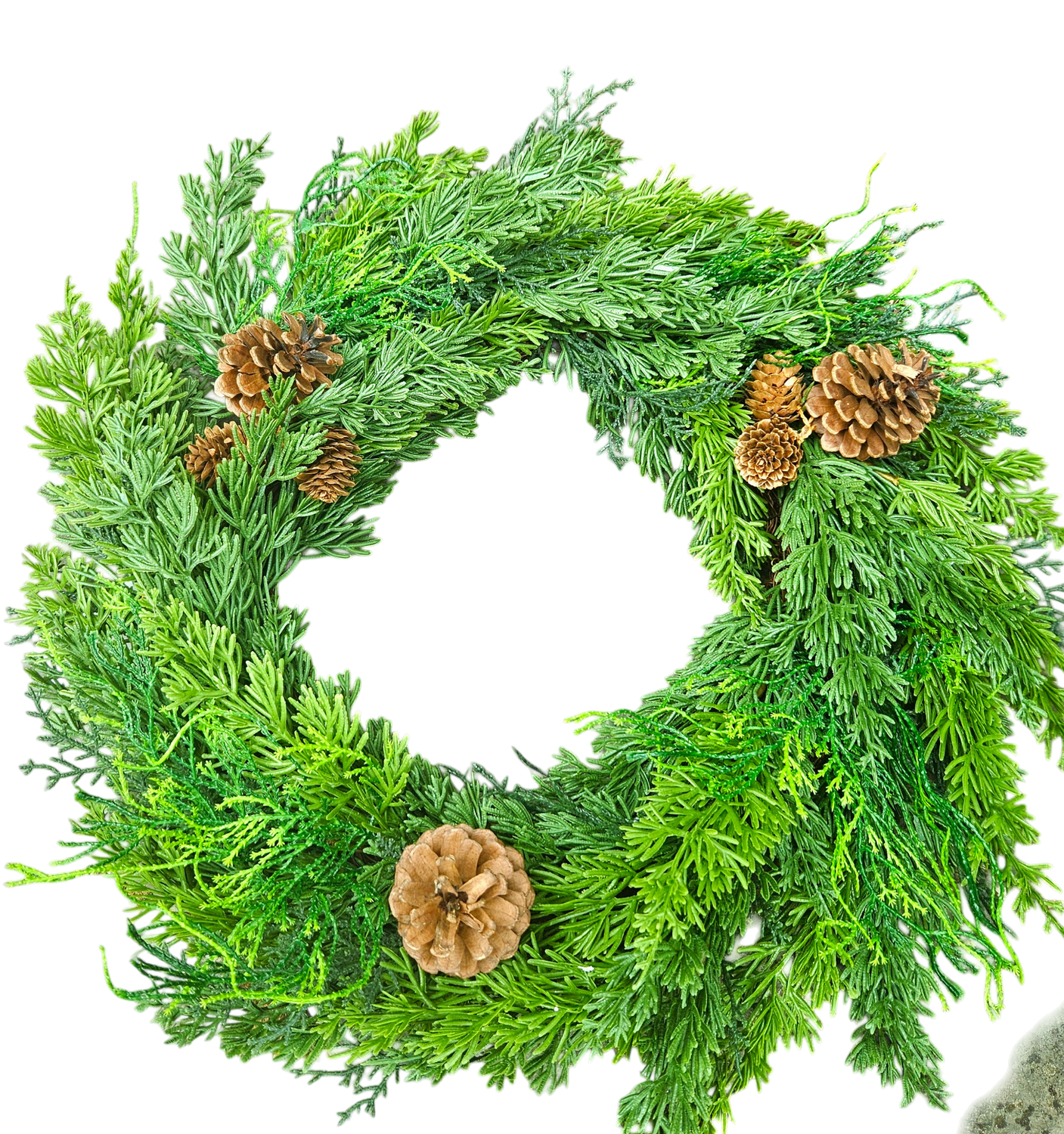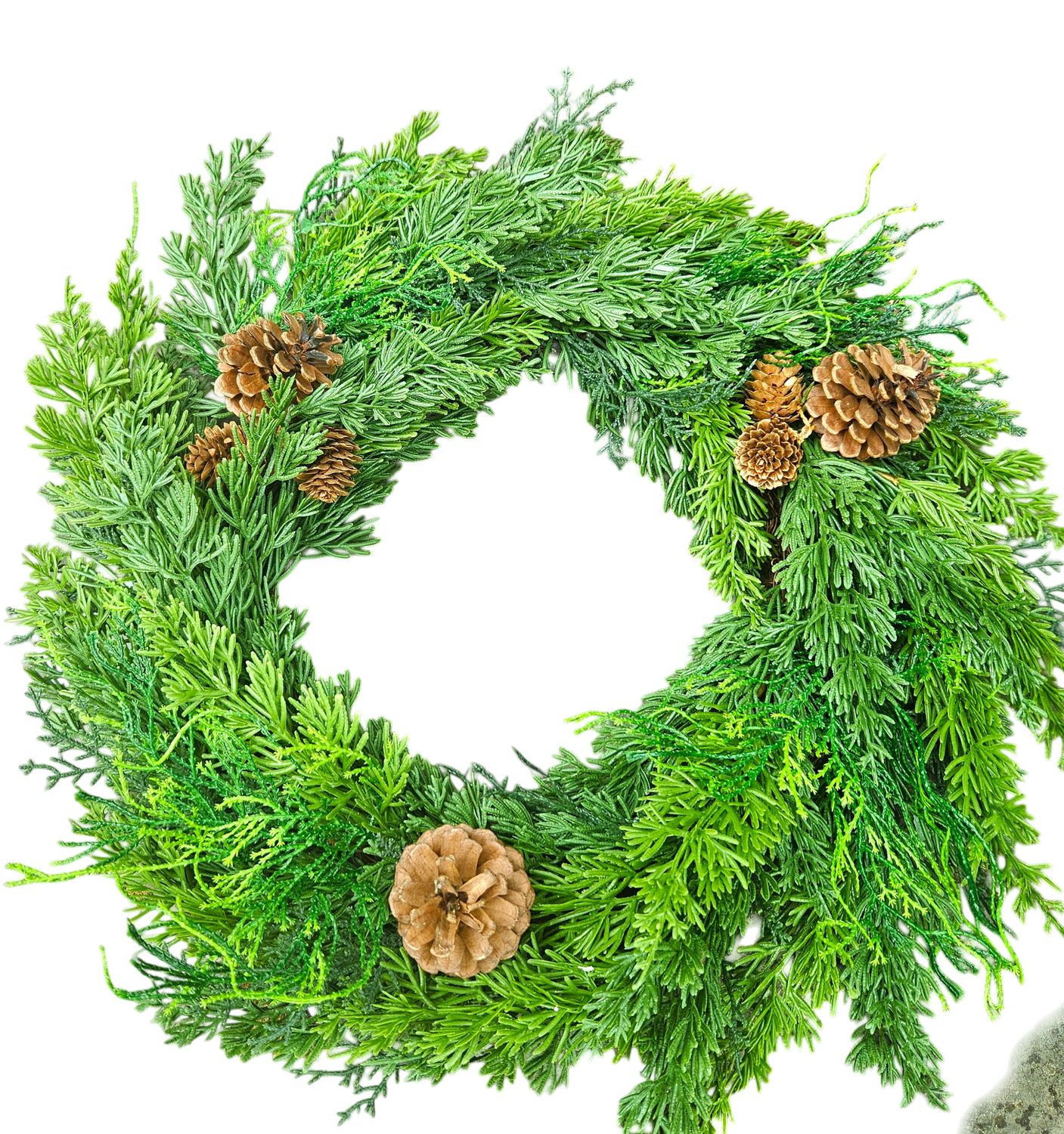 Información sobre el producto "Corona de coníferas artificial, mixto, Ø 50 cm, Real Touch, verde"