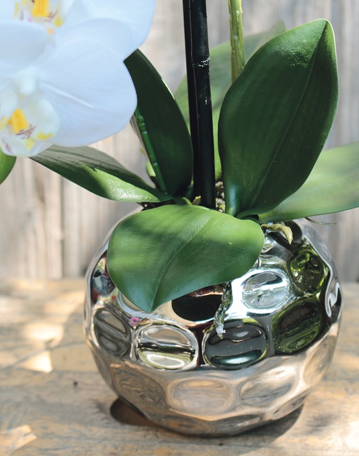 Phalaenopsis artificial, helada, en maceta, 33 cm, blanco escarchado