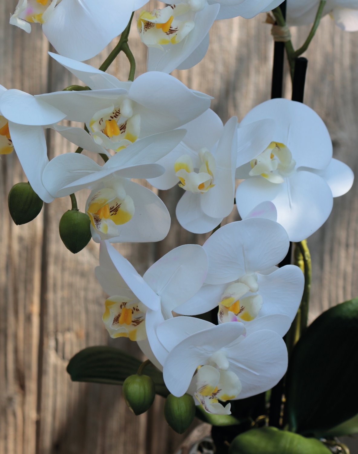 Información sobre el producto "Orquídea de seda Phalaenopsis, 2 tallos, 45 cm, tacto real, blanco crema"