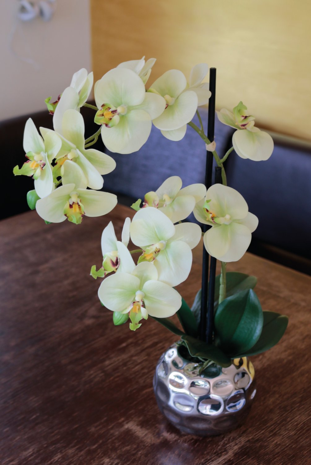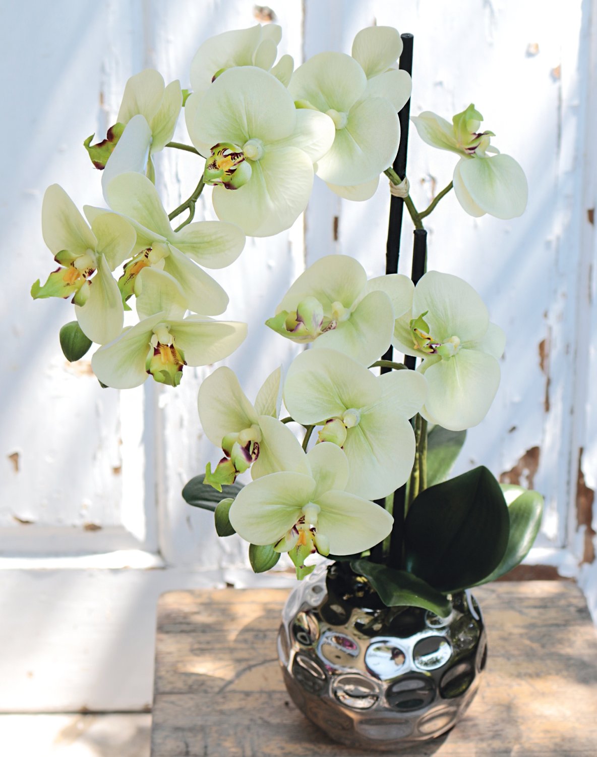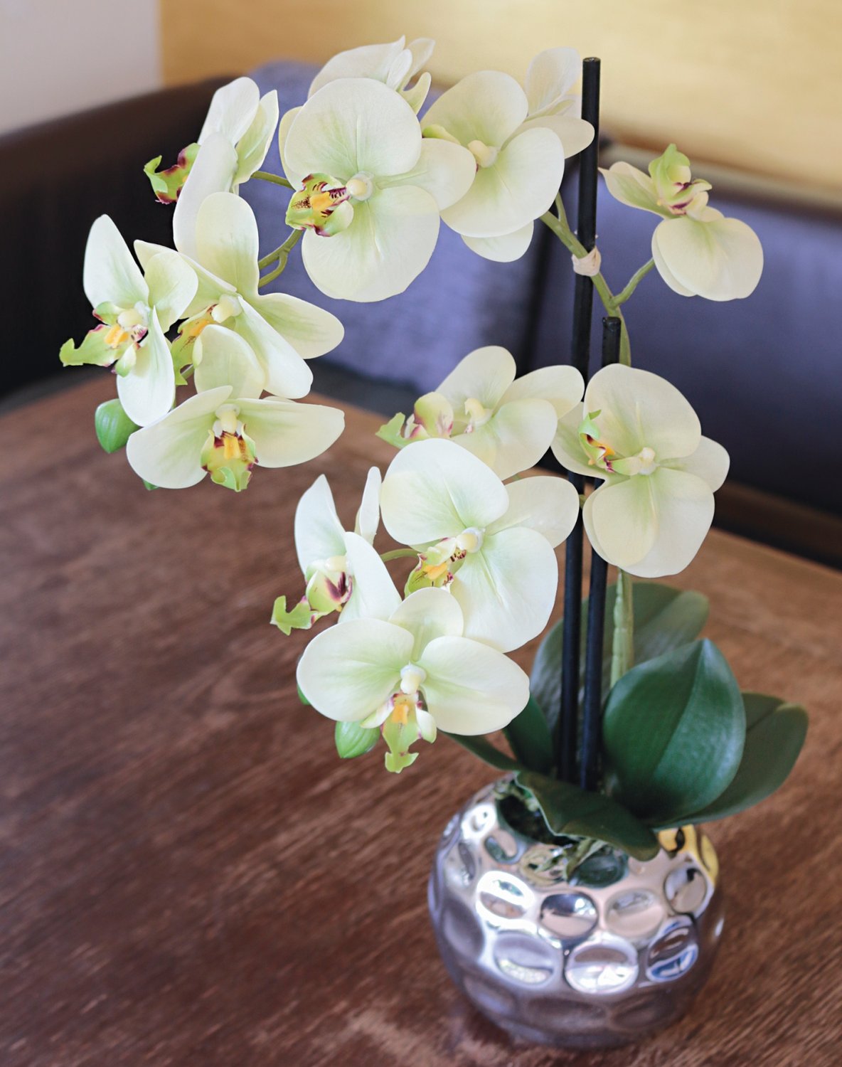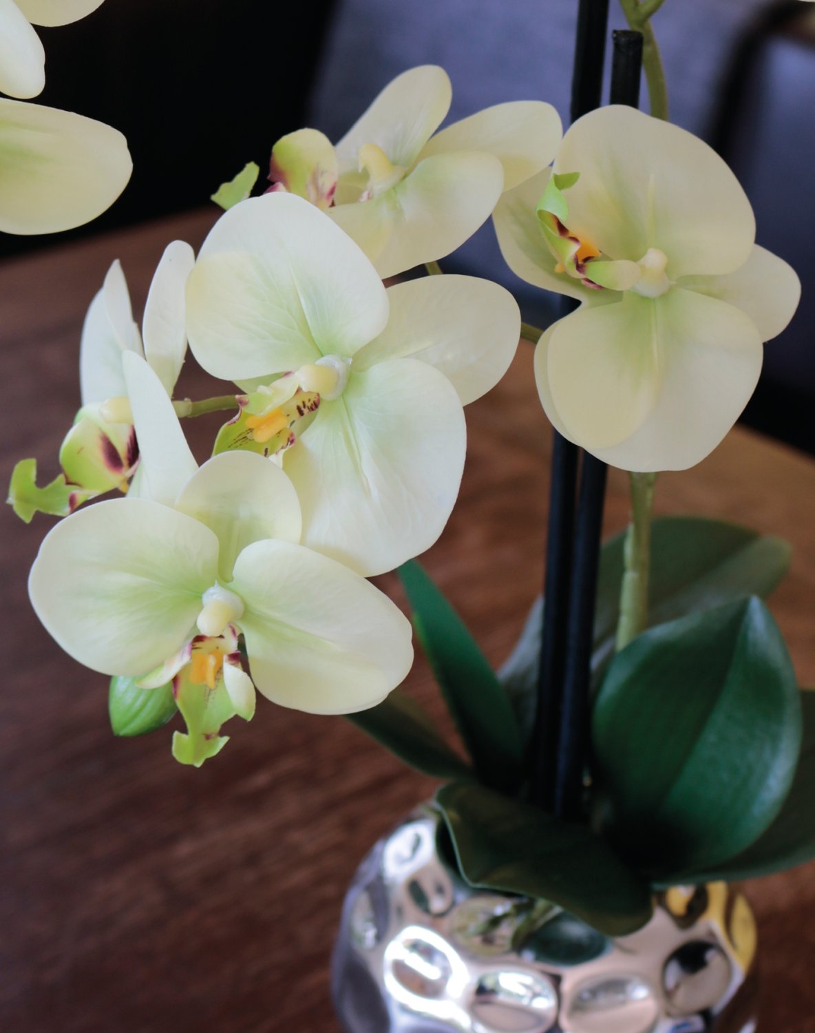 Información sobre el producto "Orquídea de seda Phalaenopsis, 2 tallos, 45 cm, tacto real, verde crema"