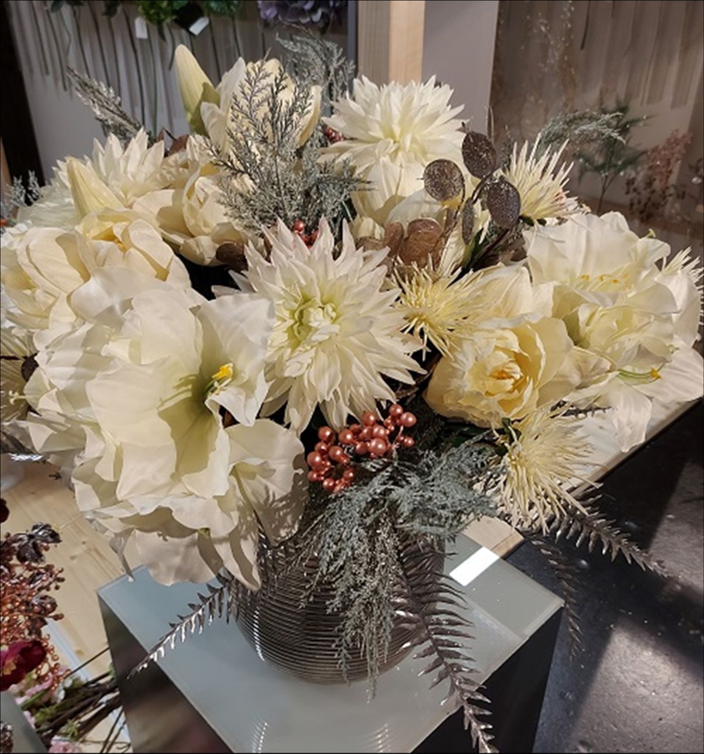 Descubra más exuberantes arreglos de flores artificiales de H.Andreas aquí .