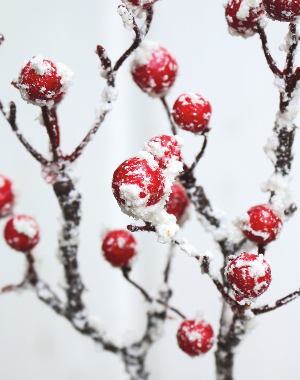 Información sobre el producto "Rama de bayas falsas con nieve, 33 cm, rojo-blanco"