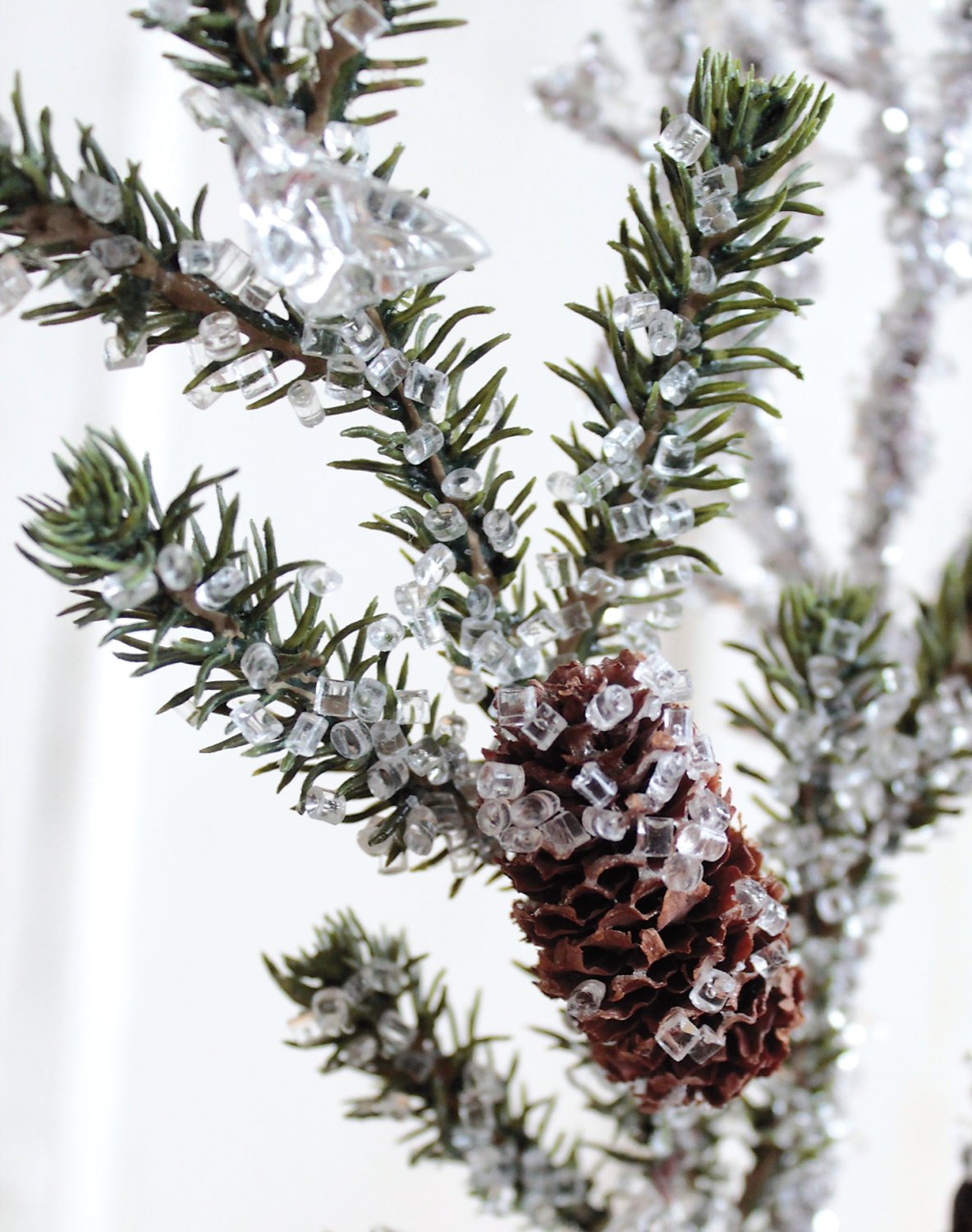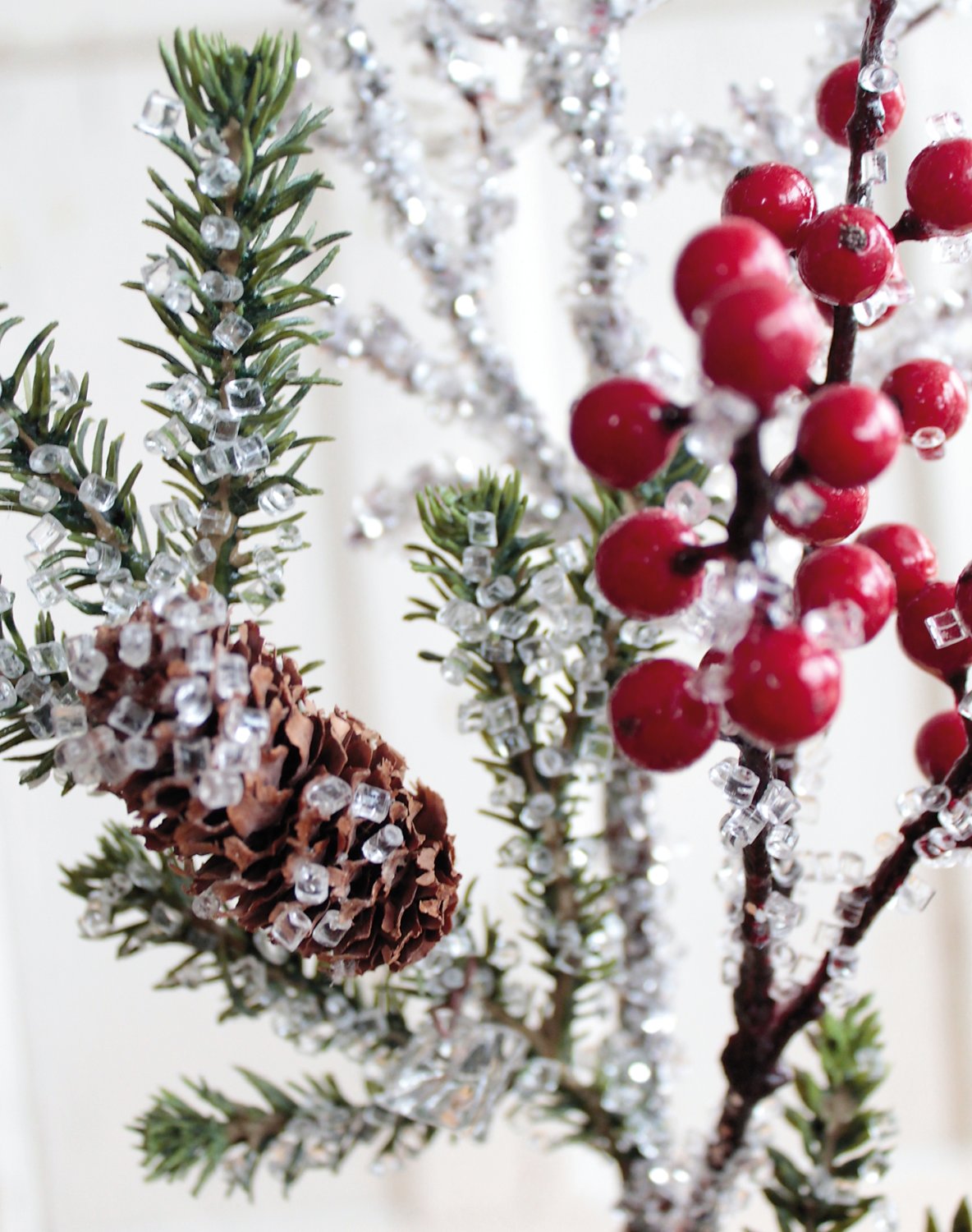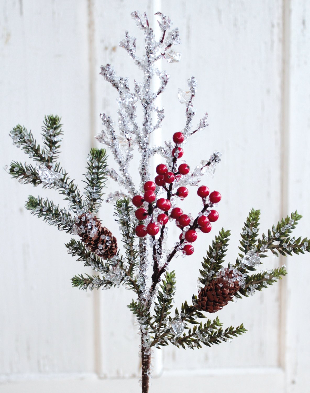 Informations sur le produit "Branche de sapin artificielle avec baies / pommes de pin / glace, 50 cm, rouge-vert"