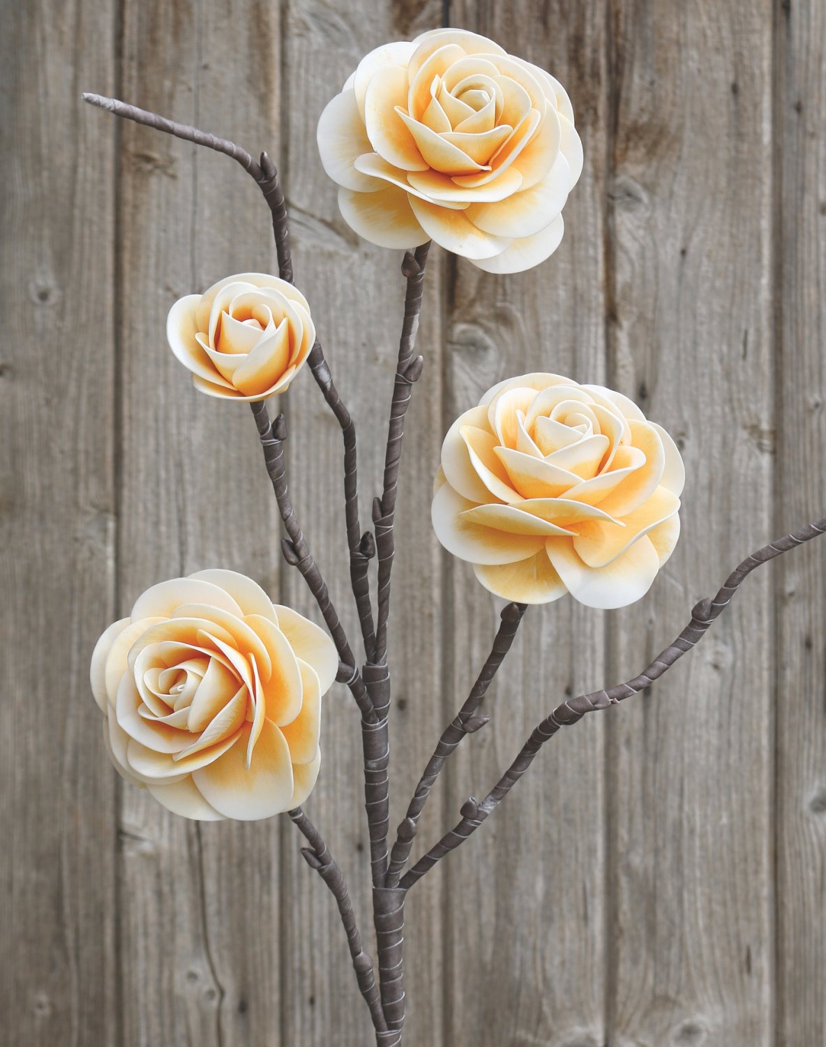 Informations sur le produit "Fleur artificielle douce 'Rose', 3 fleurs, 1 bouton, 106 cm, jaune"